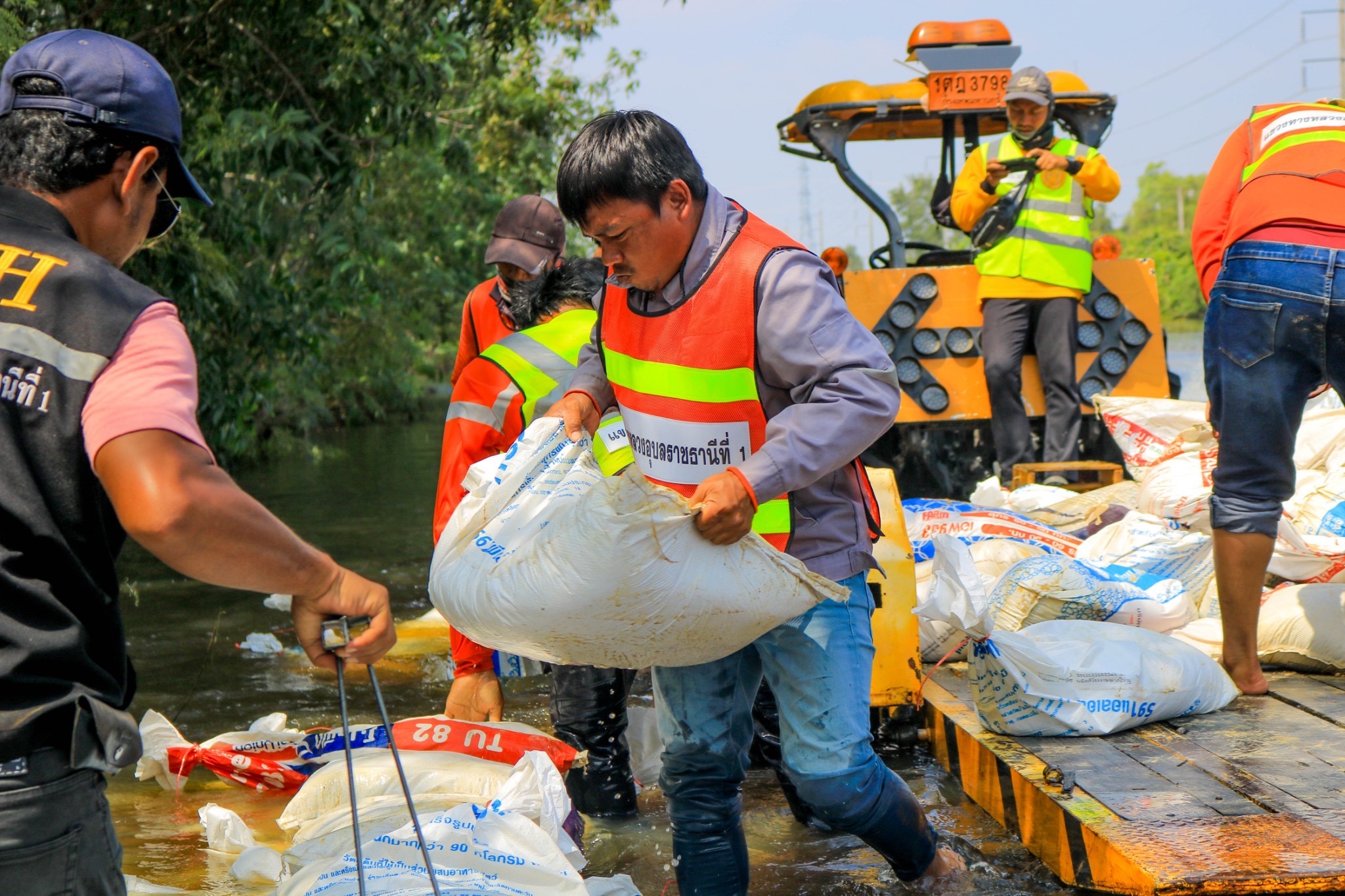 กรมทางหลวงวางแนวแบริเออร์กันอันตรายพร้อมจัดรถรับ - ส่ง ผู้ประสบภัยในพื้นที่ จ.อ่างทอง บรรเทาความเดือดร้อนประชาชนตามนโยบาย รวค.