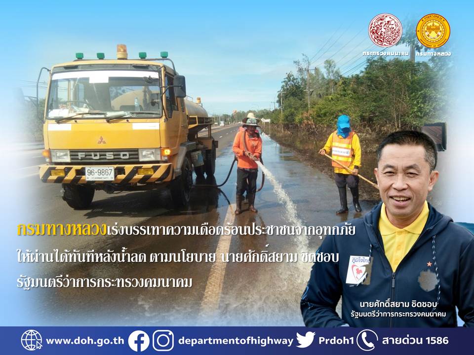 กรมทางหลวงเร่งบรรเทาความเดือดร้อนประชาชนจากอุทกภัยให้ผ่านได้ทันทีหลังน้ำลด ตามนโยบาย นายศักดิ์สยาม ชิดชอบ รัฐมนตรีว่าการกระทรวงคมนาคม