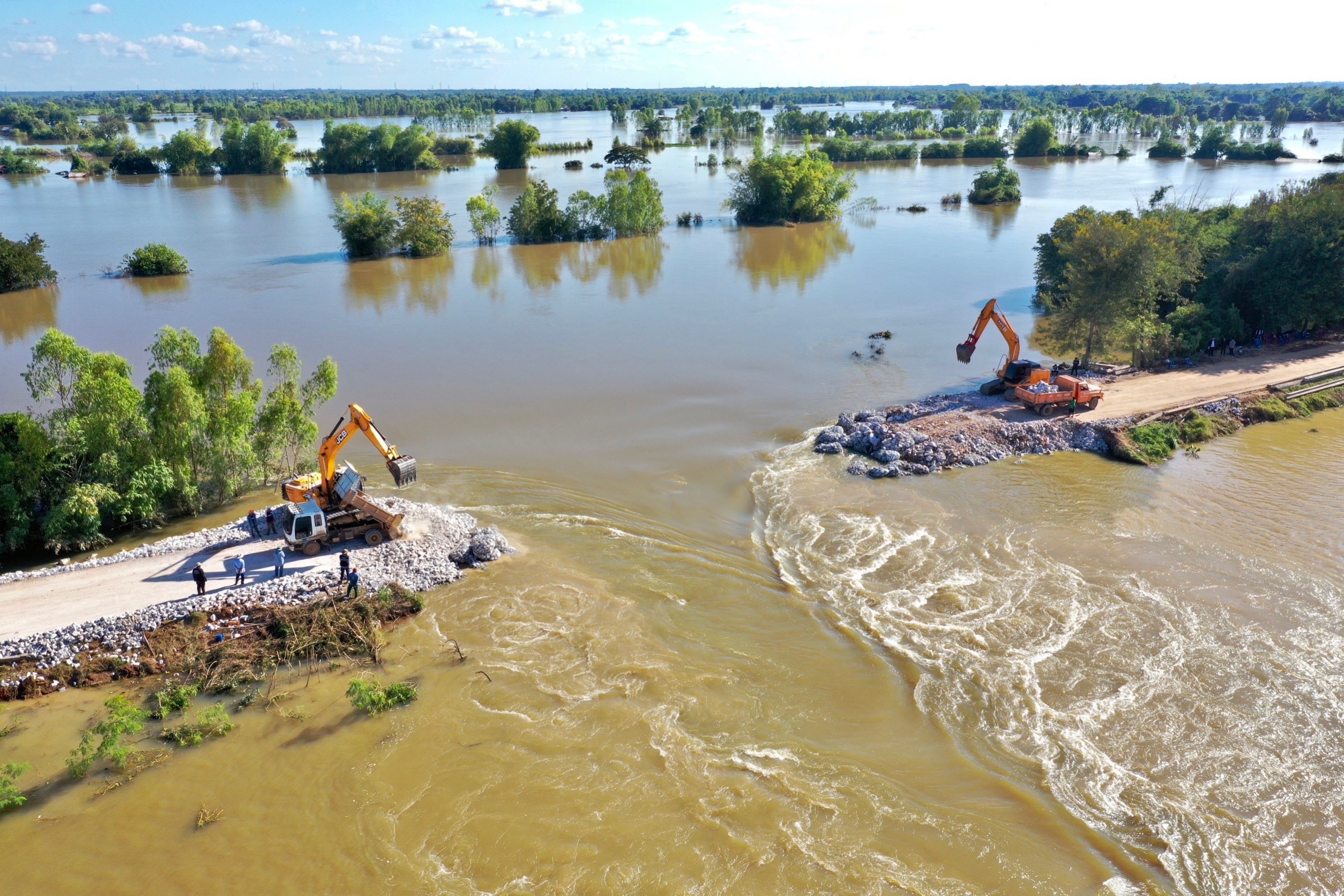 อุบลราชธานี, ศรีสะเกษ ยังวิกฤต! กรมทางหลวงร่วมกับท่าอากาศยานนานาชาติอุบลราชธานีและมูลนิธิร่วมกตัญญู จัดเตรียมกระสอบทรายเสริมแนวป้องกันน้ำ