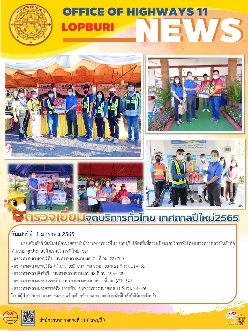 นายเสริมศักดิ์ นัยนันท์ ผู้อำนวยการสำนักงานทางหลวงที่ 11 (ลพบุรี) เดินทางไปตรวจเยี่ยมศูนย์อำนวยการ การอำนวยความสะดวกความปลอดภัยช่วงเทศกาลปีใหม่2565