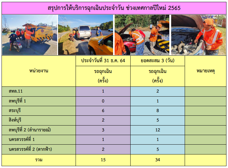 การให้บริการช่วยเหลือฉุกเฉินบนทางหลวงเทศกาลปีใหม่ 2565(4ม.ค.65)