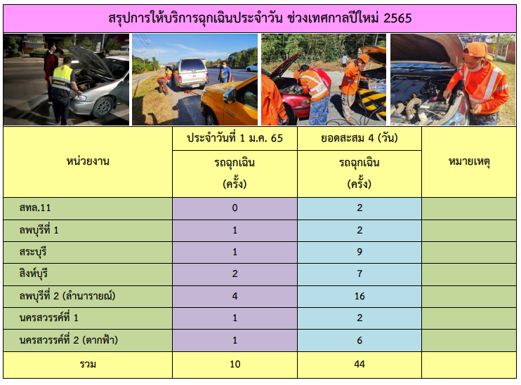 การให้บริการช่วยเหลือฉุกเฉินบนทางหลวงเทศกาลปีใหม่ 2565(1ม.ค.65)