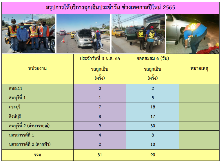 การให้บริการช่วยเหลือฉุกเฉินบนทางหลวงเทศกาลปีใหม่ 2565(3ม.ค.65)
