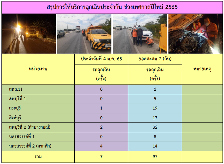 การให้บริการช่วยเหลือฉุกเฉินบนทางหลวงเทศกาลปีใหม่ 2565(4ม.ค.65)