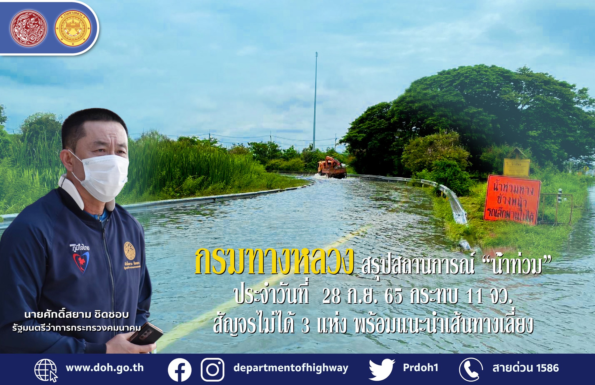 กรมทางหลวง สรุปสถานการณ์ “น้ำท่วม”ประจำวันที่ 28 ก.ย. 65 กระทบ 11 จว.สัญจรไม่ได้ 3 แห่ง ทั้ง จ.ขอนแก่น, เพชรบูรณ์, นครสวรรค์