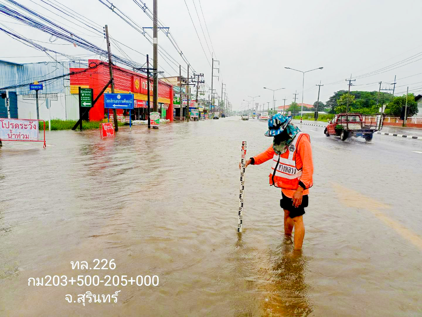 1.จังหวัดขอนแก่น ทางหลวงหมายเลข 229 สายบ้านไผ่ – มัญจาคีรี พื้นที่ อ.มัญจาคีรี ช่วง กม.ที่ 23+500 – 24+595 ด้านซ้ายทางและขวาทาง ระดับน้ำ 50 ซม. การจราจรผ่านไมได้ แนะนำทางเลี่ยงสี่แยกมัญจาคีรี แล้วเลี้ยวซ้ายออกไปบรรจบ ทล.229 ตอนมัญจาคีรี – ห้วยสามหมอ มีเจ้าหน้าที่คอยอำนวยความสะดวกด้านการจราจร