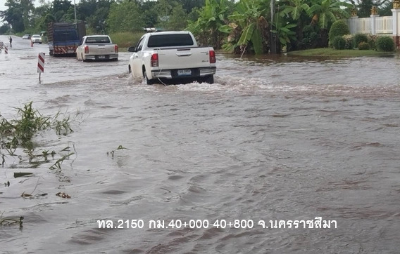 4. จังหวัดนครราชสีมา ทางหลวงหมายเลข 226 หัวทะเล – หนองกระทิง อ.จักราช ช่วง กม.ที่ 33+900 – 34+400 ระดับน้ำ 40 ซม. รถเล็กผ่านไม่ได้ ให้ใช้ทางเลี่ยงทางหลวงหมายเลข 4