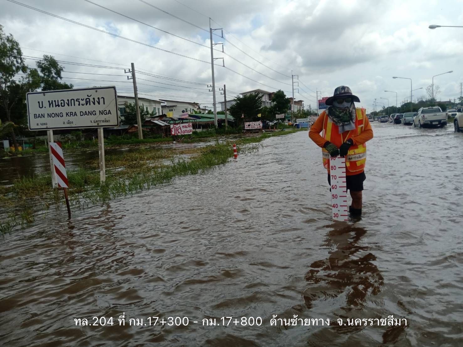 5. จังหวัดนครราชสีมา ทางหลวงหมายเลข 226 หัวทะเล – หนองกระทิง อ.จักราช ช่วง กม.ที่ 33+900 – 34+400 ระดับน้ำ 40 ซม. รถเล็กผ่านไม่ได้ ให้ใช้ทางเลี่ยงทางหลวงหมายเลข 24