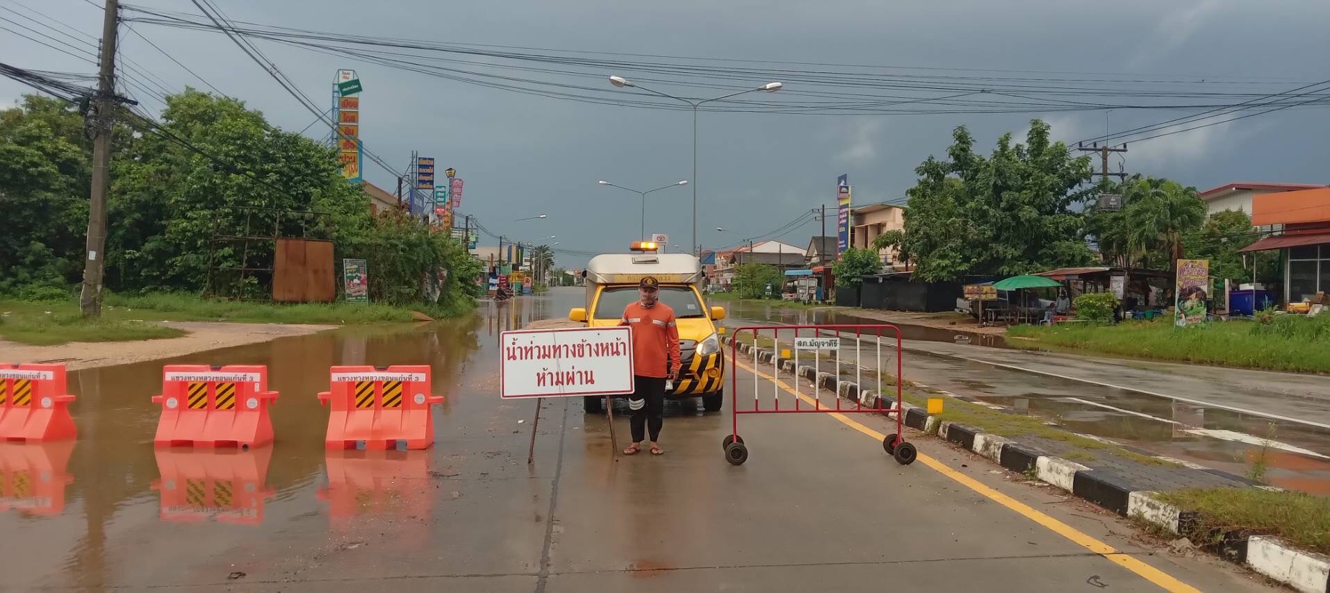 - ทางหลวงหมายเลข 226 ตอน ห้วยขะยุง – วารินชำราบ ช่วง กม.ที่ 319+600 – 320+200 ระดับน้ำ 60 ซม. ให้ใช้เส้นทางเลี่ยงท้องถิ่นแทน