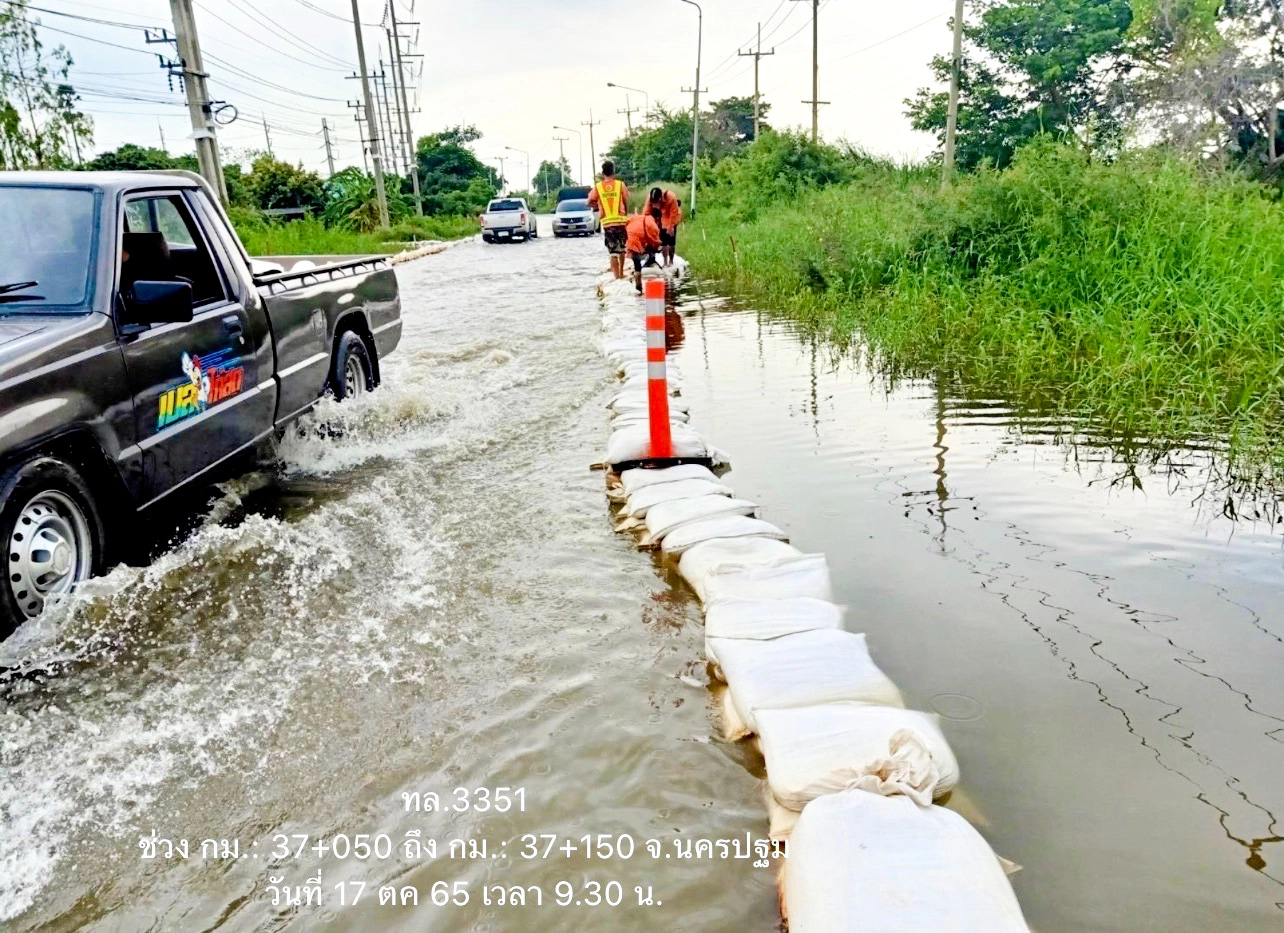 นายสราวุธ  ทรงศิวิไล อธิบดีกรมทางหลวง เปิดเผยว่า จากสถานการณ์น้ำท่วมในหลายพื้นที่ ส่งผลให้ทางหลวงบางเส้นทางมีน้ำท่วมสูงเป็นเหตุให้ไม่สามารถใช้สัญจรได้ตามปกติ กรมทางหลวงได้สั่งการให้ สำนักงานทางหลวง แขวงทางหลวง หมวดทางหลวงทั่วประเทศ เฝ้าระวัง และติดตามสถานการณ์อย่างใกล้ชิด หากพื้นที่ใดประสบปัญหาก็จะระดมบุคลากร นำเครื่องจักรและวัสดุอุปกรณ์เข้าให้การช่วยเหลือเพื่อเร่งระบายน้ำและบรรเทาความเดือดร้อนโดยเร็วที่สุด พร้อมกำชับให้ผู้บริหารในพื้นที่ติดตามสถานการณ์อย่างใกล้ชิด นอกจากนี้ยังติดตั้งป้ายเตือนและอุปกรณ์อำนวยความปลอดภัยแก่ผู้ใช้เส้นทาง ในขณะที่บางจังหวัดก็มีการล้างทำความสะอาดถนนหลังจากน้ำลดลงบ้างแล้ว เพื่อบรรเทาความเดือดร้อนของประชาชนให้ได้รับความสะดวกปลอดภัยในการสัญจรโดยเร็วที่สุดอย่างต่อเนื่อง ตามข้อสั่งการของ นายศักดิ์สยาม ชิดชอบ รัฐมนตรีว่าการกระทรวงคมนาคม ที่มีความห่วงใยประชาชนผู้ประสบภัยในครั้งนี้ พร้อมทั้งเฝ้าระวังตลอด 24 ชั่วโมง เพื่อช่วยประชาชนอย่างทันท่วงที  พร้อมกันนี้กรมทางหลวง ได้ทำการสรุปสถานการณ์อุทกภัยและดินสไลด์บนทางหลวง โดย สถานการณ์ประจำวันที่ 17 ตุลาคม  2565 เวลา 12.30 น. พบทางหลวงถูกน้ำท่วม/ดินสไลด์ ในพื้นที่ 12 จังหวัด ได้แก่ จ.ขอนแก่น, จ.ศรีสะเกษ, จ.นครราชสีมา ,จ.หนองบัวลำภู , จ.อุบลราชธานี, จ.มหาสารคาม, จ.ยโสธร, จ.นครปฐม, จ.อ่างทอง, จ.พระนครศรีอยุธยา, จ.สิงห์บุรี และ จ.นครสวรรค์ จำนวน 28 สายทาง 38 แห่ง  การจราจรผ่านไม่ได้ 27 แห่ง ดังนี้