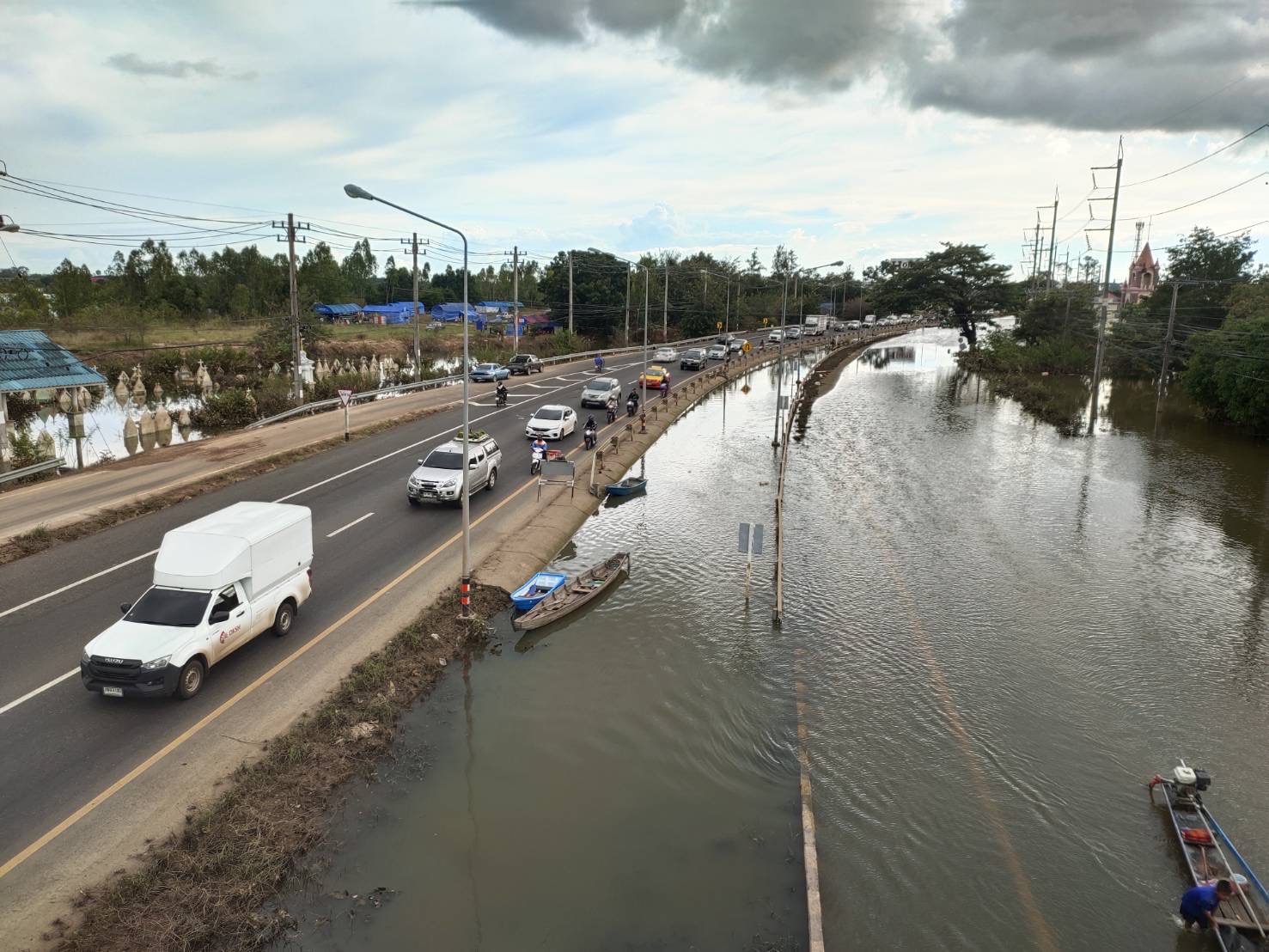 สำหรับเส้นทางที่ประชาชนยังไม่สามารถสัญจรผ่านได้ คือ ทางหลวงหมายเลข 24 ตอน วารินชำราบ - อุบลราชธานี ช่วง กม.ที่ 418+400 – กม. ที่ 419+600 ระดับน้ำ 35 - 40 เซนติเมตร กรมทางหลวงแนะนำให้ประชาชนใช้เส้นทางเลี่ยง บนทางหลวงหมายเลข 217 ทางแยกต่างระดับบัวเทิง เลี้ยวซ้ายไปสะพานข้ามแม่น้ำมูล เข้าสู่ตัวเมืองอุบลราชธานี ทั้งนี้ เมื่อระดับน้ำลดลง เจ้าหน้าที่จะเร่งดำเนินการกู้เส้นทางดังกล่าว โดยการวางกระสอบทรายกั้นน้ำ และทำการสูบน้ำออกในจุดที่น้ำท่วมขัง ควบคู่กับการทำความสะอาดผิวจราจรทั้งขยะ วัชพืช และดินโคลน รวมทั้งดำเนินการปรับปรุงซ่อมแซมผิวทางที่ชำรุดเสียหายอย่างเร็วที่สุด ซึ่งคาดว่าจะสามารถดำเนินการได้แล้วเสร็จภายในสัปดาห์หน้า