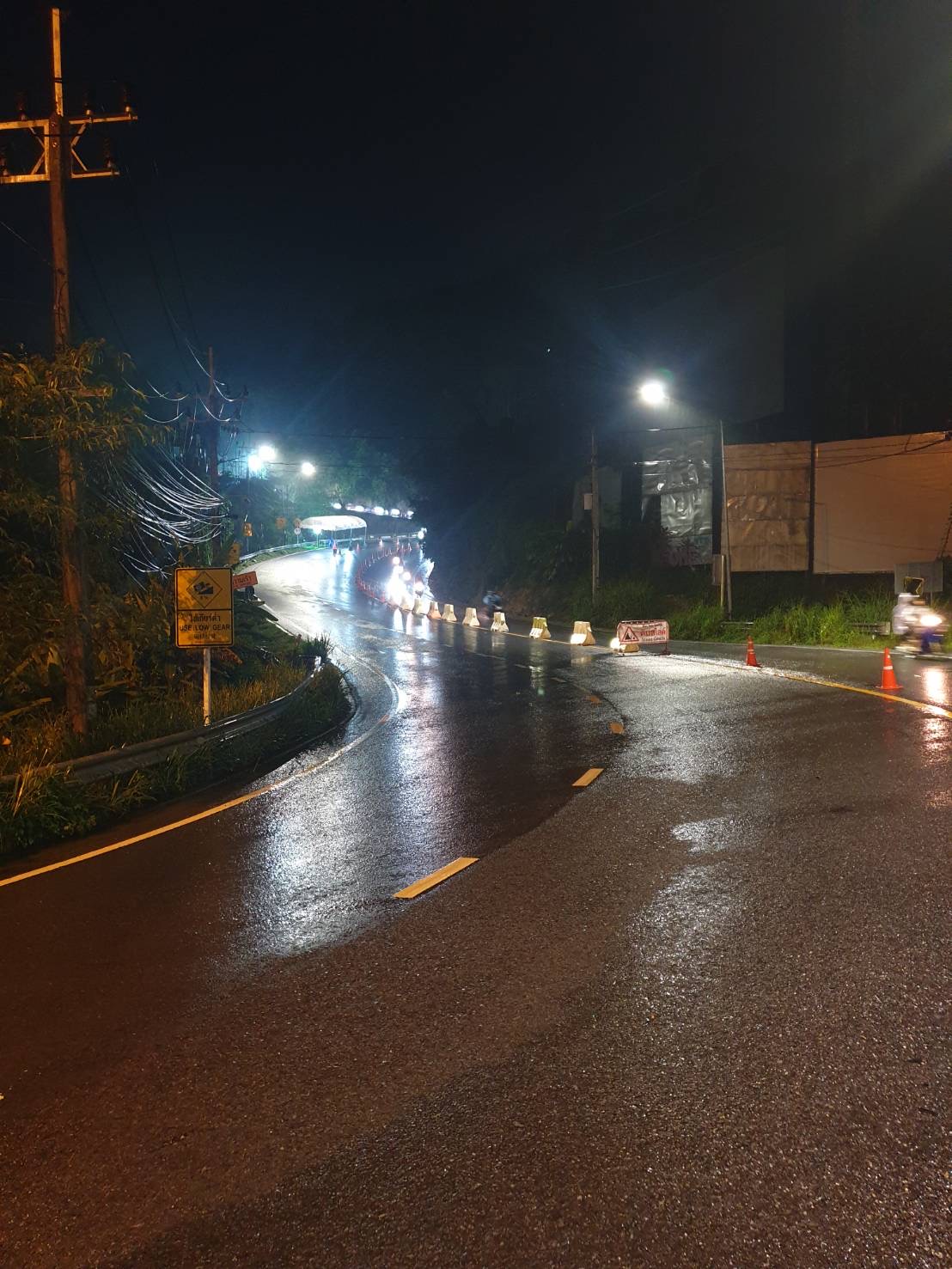อธิบดีกรมทางหลวง กล่าวถึงความคืบหน้าในการเร่งรัดดำเนินการเปิดทางจราจรในพื้นที่ ล่าสุด จากผลทดสอบโครงสร้างของดิน สามารถเปิดจราจรสำหรับรถจักรยานยนต์ได้ โดยการวางแบริเออร์สีส้มบรรจุน้ำ ป้องกันอุบัติเหตุจากการใช้รถสัญจรผ่านจุดที่มีดินสไลด์ทรุดตัว ทำการปิดบ่อน้ำด้านบนเขาเพื่อป้องกันการซึมของน้ำใต้ดินที่จะกระทบกับโครงสร้างชั้นทาง และปูผ้าใบคลุมดิน ทับด้วยกระสอบเพื่อป้องกันดินที่จะสไลด์จากน้ำฝน ทั้งนี้ เพื่ออำนวยความสะดวกและปลอดภัยในการสัญจรเส้นทางดังกล่าว ปัจจุบันแขวงทางหลวงภูเก็ต ได้เปิดการจราจรให้เฉพาะรถจักรยานยนต์ สามารถวิ่งผ่านได้เท่านั้น ทั้ง 2 ทิศทาง (ไปกระทู้และไปป่าตอง)