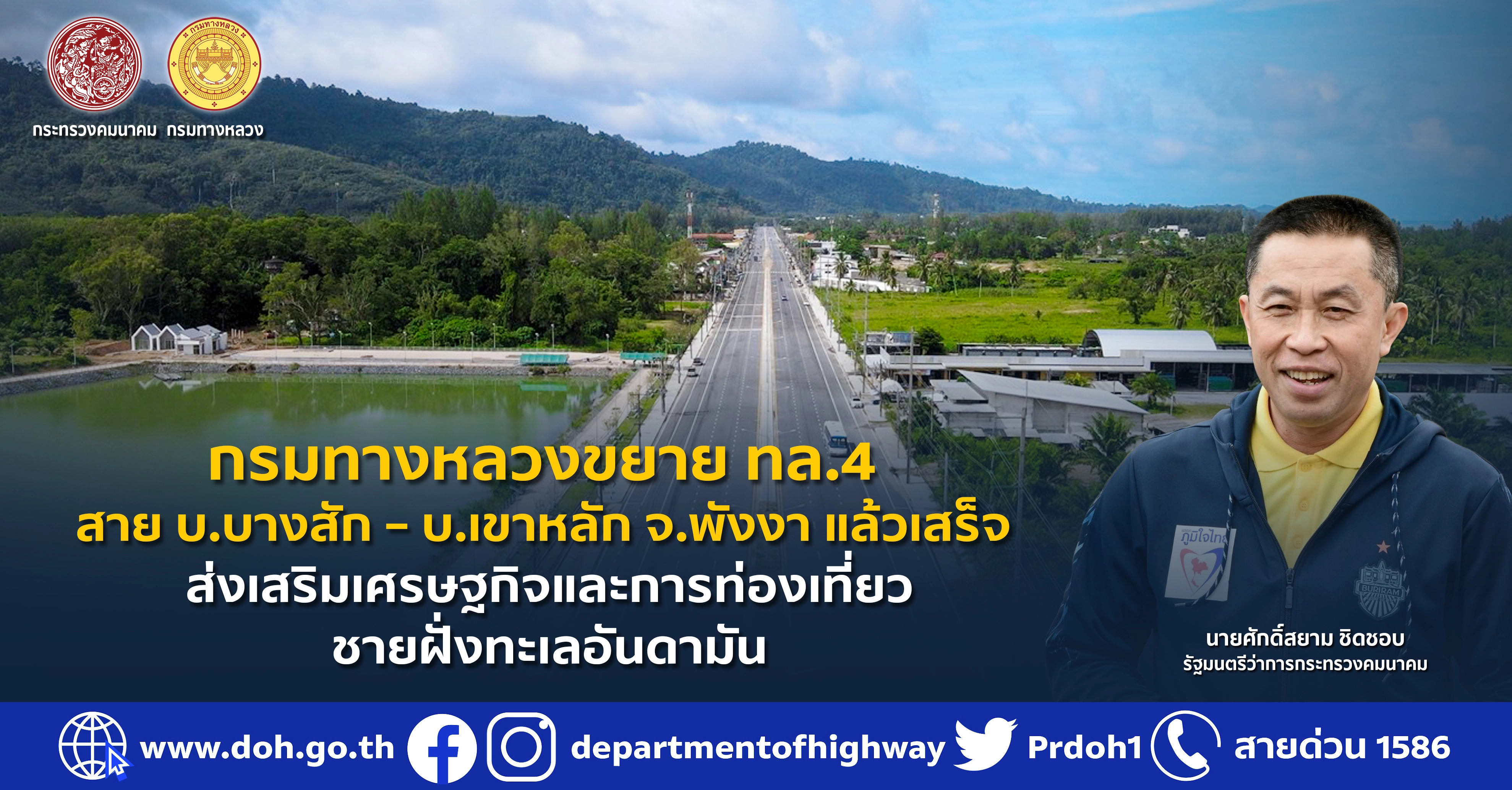 กรมทางหลวงขยาย ทล.4 สาย บ.บางสัก – บ.เขาหลัก จ.พังงา แล้วเสร็จ ส่งเสริมเศรษฐกิจและการท่องเที่ยวชายฝั่งทะเลอันดามัน