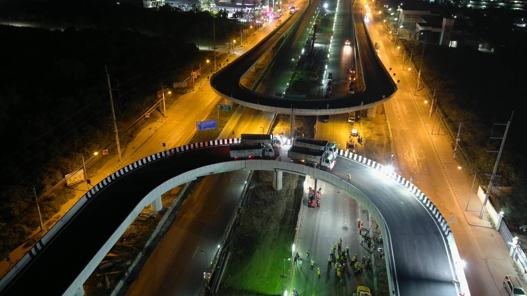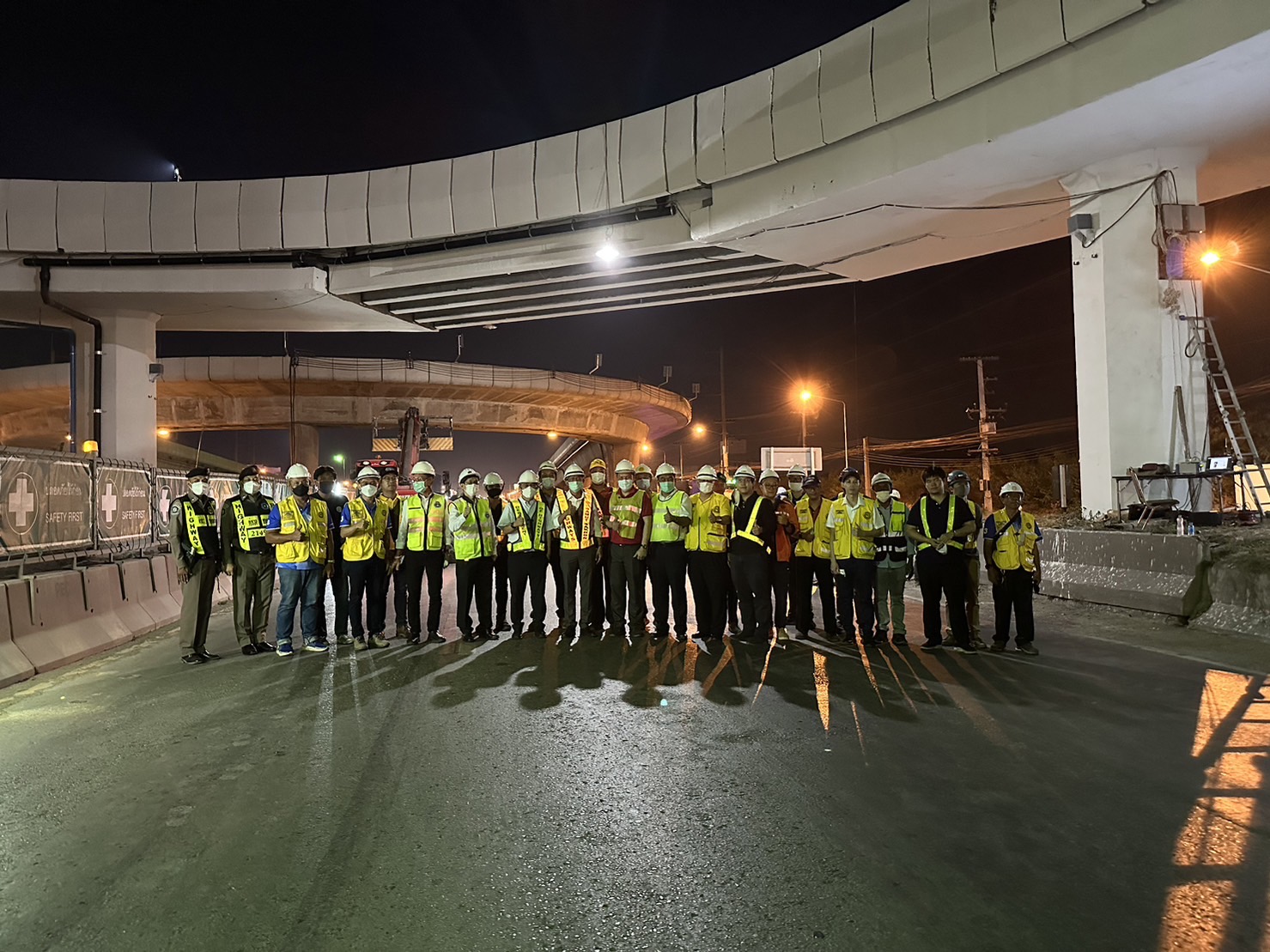 เมื่อวันที่ 10 พฤศจิกายน 2565 เวลา 22.00 น. นายสราวุธ ทรงศิวิไล อธิบดีกรมทางหลวง พร้อมด้วยนายไพฑูรย์ พงษ์ชวลิต รองอธิบดีกรมทางหลวง นายมนตรี เดชาสกุลสม รองอธิบดีกรมทางหลวง นายทวีศักดิ์ รุจิจรรยาวัฒน์ ผู้อำนวยการสำนักก่อสร้างสะพาน นายพรชัย ศิลารมย์ ผู้อำนวยการศูนย์สร้างและบูรณะสะพานที่ 3 (ปทุมธานี) นายประลองยุทธ์ กสิวงศ์ ผู้อำนวยการแขวงทางหลวงสมุทรสาคร และเจ้าหน้าที่ที่เกี่ยวข้อง ร่วมลงพื้นที่พร้อมด้วย รศ.เอนก ศิริพานิชกร ประธานอนุกรรมการโครงสร้างและสะพานวิศวกรรมสถานแห่งประเทศไทย ในพระบรมราชูปถัมภ์ (วสท.) รศ.ดร.ภาณุวัฒน์ จ้อยกลัด อนุกรรมการโครงสร้างและสะพาน วิศวกรรมสถานแห่งประเทศไทย ในพระบรมราชูปถัมภ์ (วสท.) และ รศ.ดร.สุนิติ สุภาพ ผู้แทนจากศูนย์บริการวิชาการมหาวิทยาลัยศรีนครินทรวิโรฒ (มศว.) ลงพื้นที่เพื่อกำกับติดตามการทดสอบความสามารถในการรับน้ำหนักบรรทุกของโครงสร้างสะพานลอยกลับรถ (หน้า รพ.วิภาราม) บนทางหลวงหมายเลข 35 (ถนนพระรามที่ 2) ที่ กม.34 ฝั่งขาเข้ากรุงเทพฯ