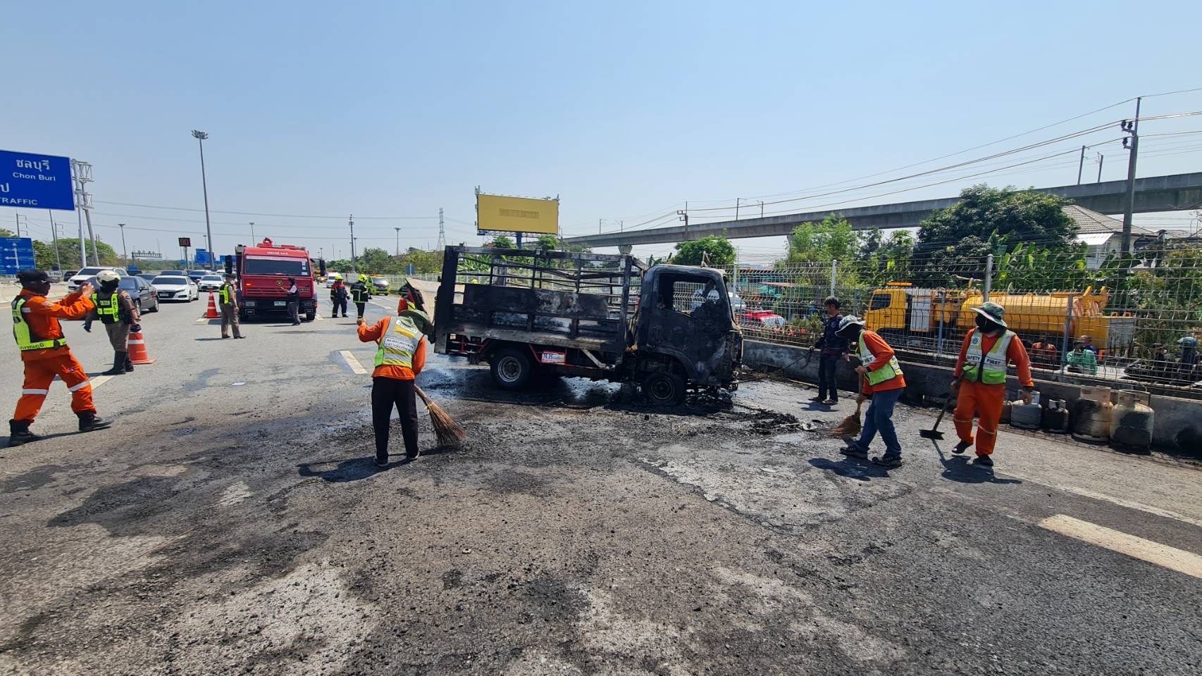 กรณีตามที่ได้มีการเผยแพร่ข่าวรถบรรทุกแก๊สหุงต้มพลิกคว่ำบนทางหลวงพิเศษหมายเลข 7 ทำให้ถังแก๊สร่วงหล่นเกิดปัญหาการจราจรติดขัด นั้น กรมทางหลวง โดยแขวงทางหลวงพิเศษระหว่างเมือง ขอเรียนชี้แจงว่า เหตุดังกล่าวเกิดขึ้นเมื่อวันที่ 21 กุมภาพันธ์ 2566 เวลาประมาณ 11.34 น. บนทางหลวงพิเศษหมายเลข 7 กรุงเทพ – ชลบุรี (สายใหม่) ที่ กม.5+900 (ฝั่งขาเข้า มุ่งหน้า กทม.) โดยมีรถบรรทุกแก๊สหุงต้มเสียหลักพลิกคว่ำกีดขวางการจราจร  ซึ่งแขวงทางหลวงพิเศษระหว่างเมือง ได้เร่งดำเนินการร่วมกับเจ้าหน้าที่กู้ภัย เจ้าหน้าที่ตำรวจ และเจ้าหน้าที่ดับเพลิงประเวศ เพื่อแก้ไขสถานการณ์และอำนวยการจราจรบริเวณที่เกิดเหตุ โดยเจ้าหน้าที่ได้ดำเนินการเคลื่อนย้ายรถบรรทุกและถังแก๊สออกจากจุดเกิดเหตุเพื่อความปลอดภัย ซึ่งจากอุบัติเหตุดังกล่าวในเบื้องต้นพบว่า มีผู้บาดเจ็บสาหัสเป็นชาย 1 ราย และมีพื้นผิวจราจรได้รับความเสียหาย ทั้งนี้ ได้นำผู้บาดเจ็บส่งโรงพยาบาลสิรินธรเรียบร้อยแล้ว และเปิดการจราจรได้เมื่อเวลา 12.50 น.