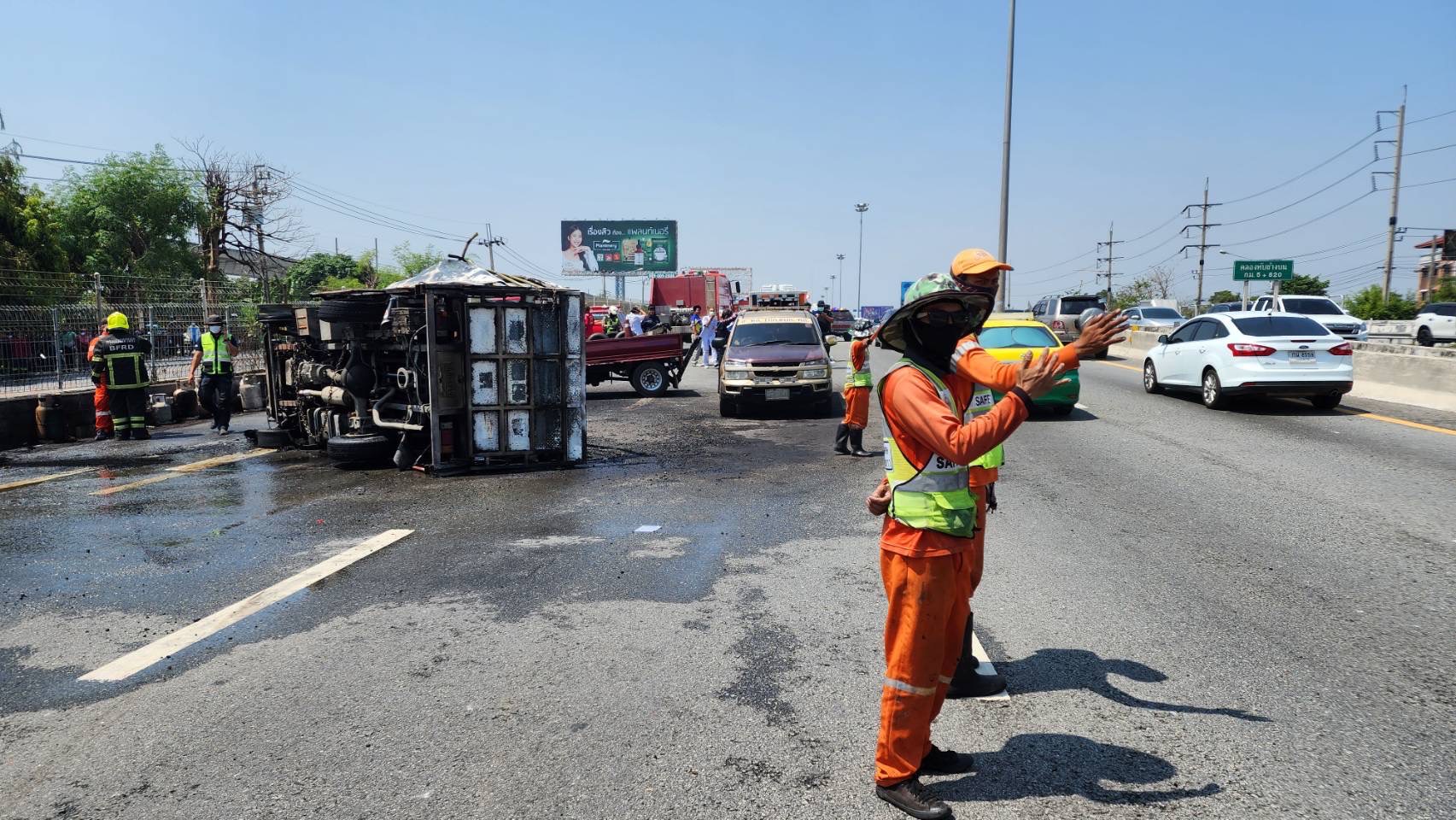 กรมทางหลวง ชี้แจงอุบัติเหตุรถบรรทุกแก๊สหุงต้มพลิกค่ำบนมอเตอร์เวย์ สาย 7 กรุงเทพ – ชลบุรี (สายใหม่)