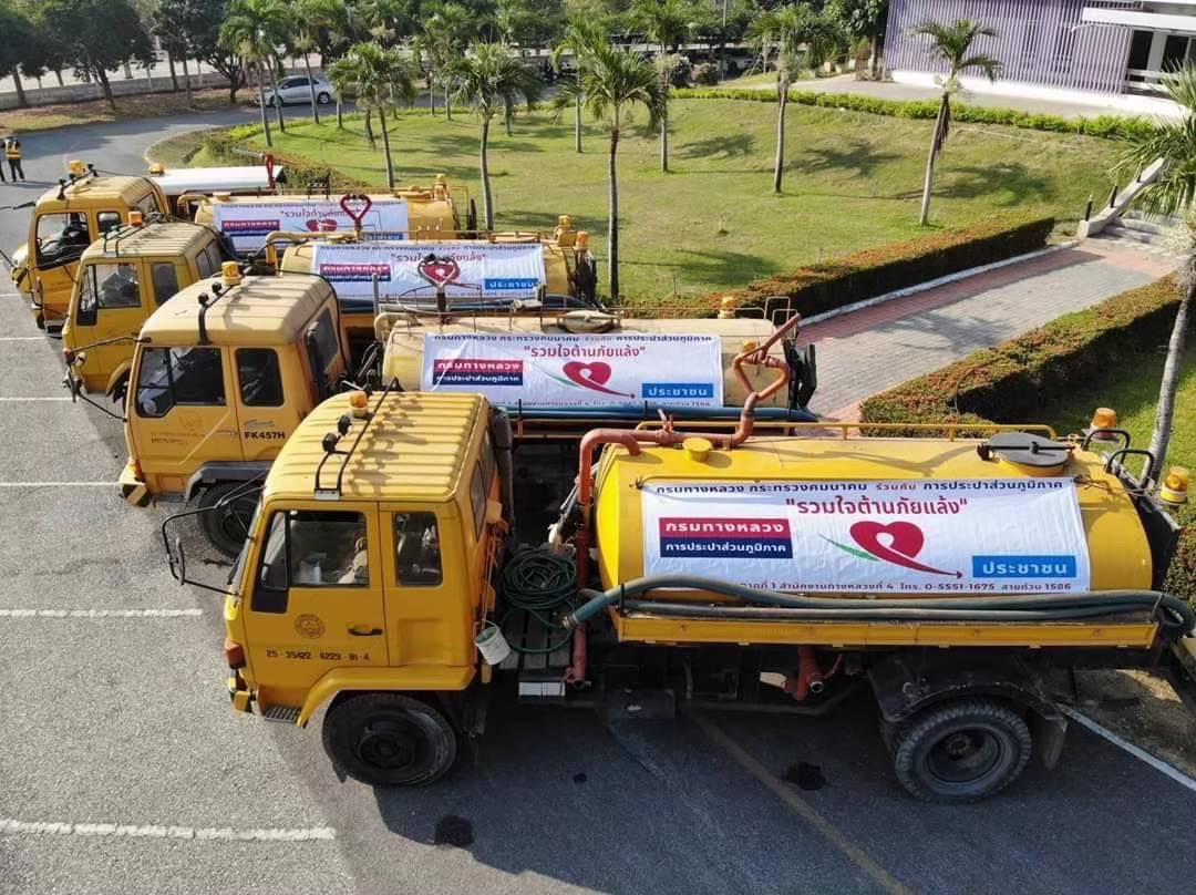 กรมทางหลวง ร่วมกับการประปาส่วนภูมิภาค แจกจ่ายน้ำประปาช่วยเหลือประชาชน เพื่อบรรเทาความเดือดร้อนในช่วงสถานการณ์ภัยแล้ง ตั้งแต่มีนาคมเป็นต้นไป