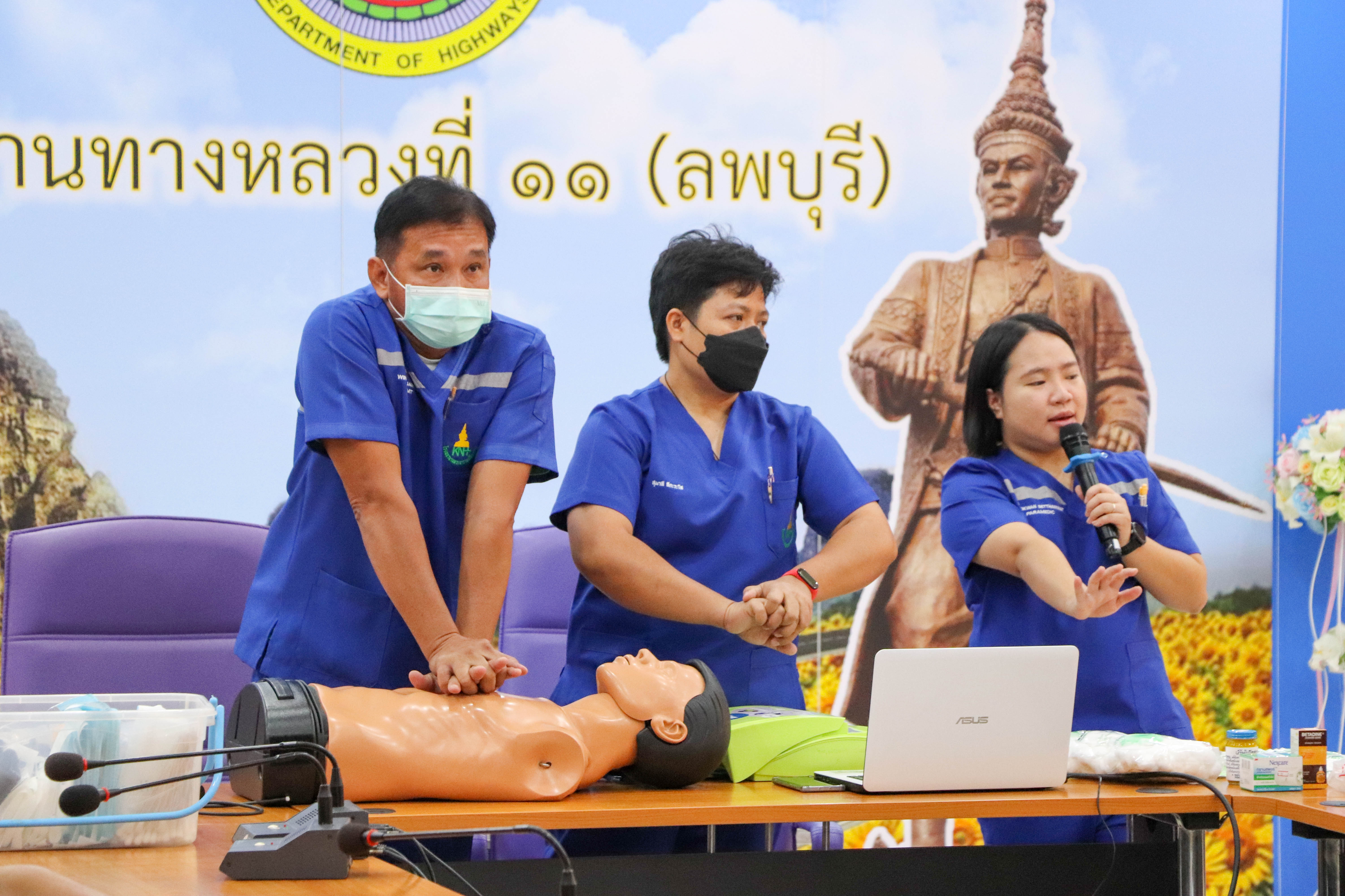 สำนักงานทางหลวงที่ 11 (ลพบุรี) จัดฝึกอบรมให้ความรู้ การปฐมพยาบาลเบื้องต้นและช่วยฟื้นคืนชีพขั้นพื้นฐาน (First Aid)