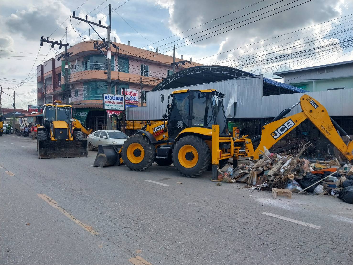 ชุดเครื่องจักรกล สำนักงานทางหลวงที่ 11 และแขวงทางหลวงในสังกัด ร่วมปฏิงานภารกิจฟื้นฟูเมืองหาดใหญ่ พื้นที่ถนนสาครมงคล 2 เริ่มปฏิบัติงานเวลา 13.00 น. ถึง 16.30 น.