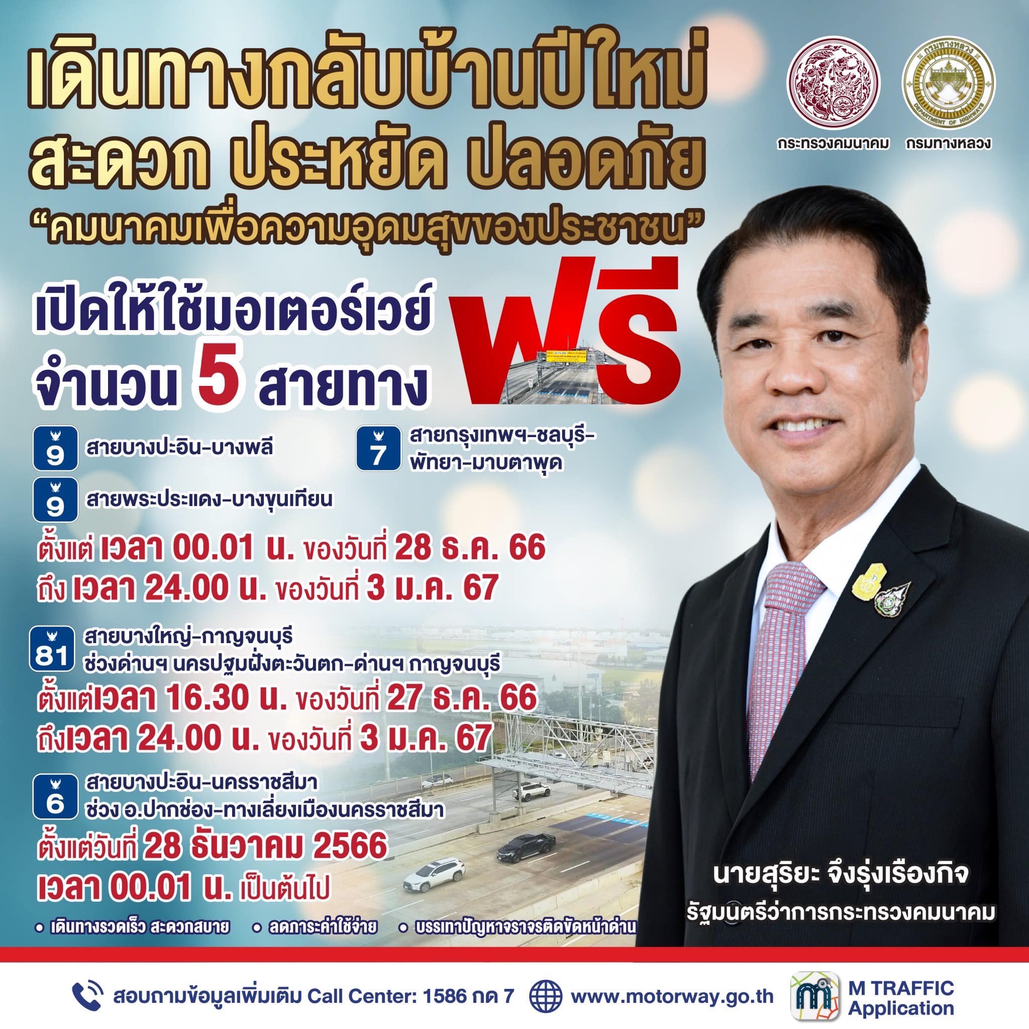 ปีใหม่นี้วิ่งฟรีมอเตอร์เวย์ทั้ง 5 เส้นทาง