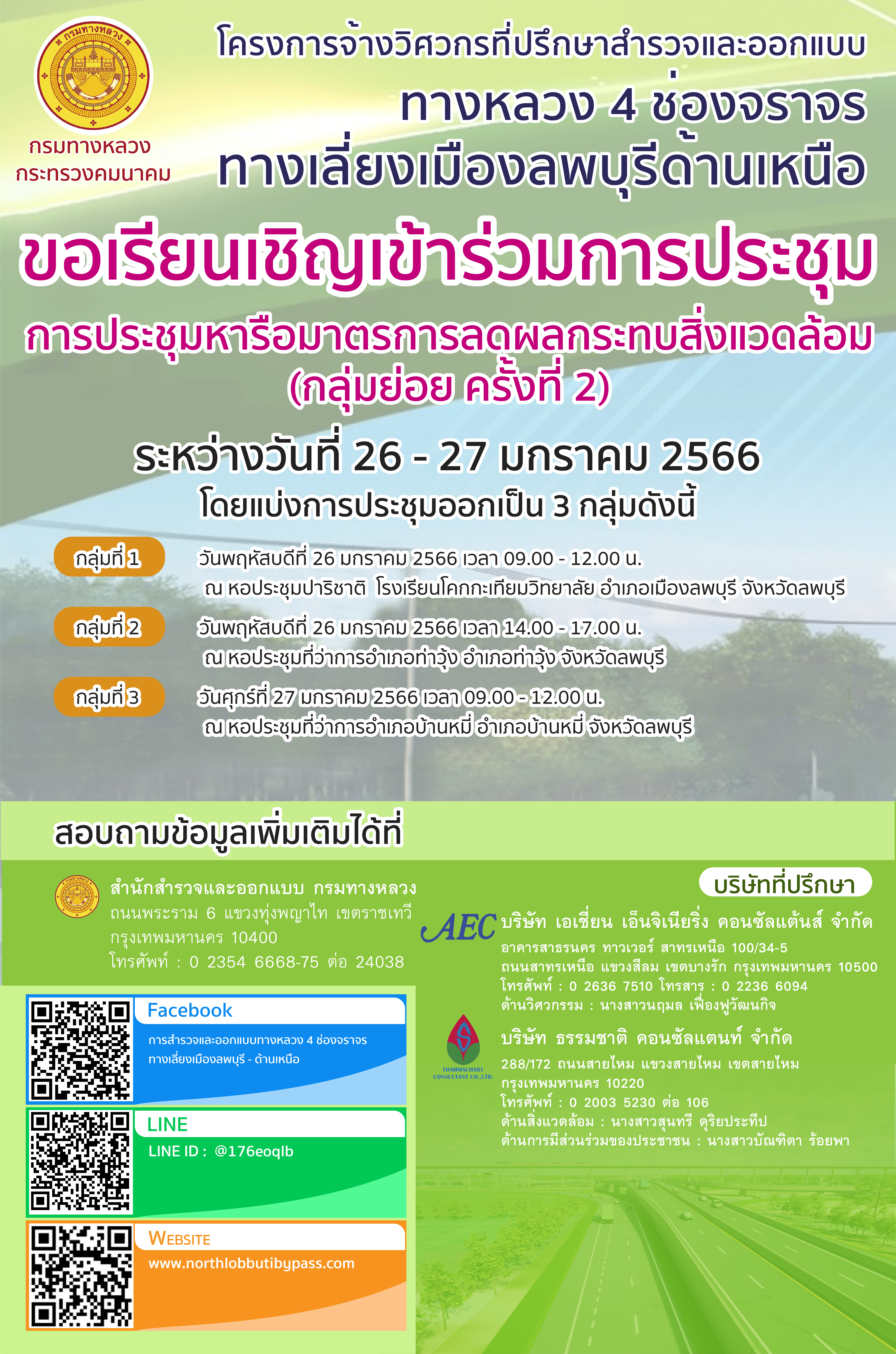 ขอเรียนเชิญเข้าร่วมการประชุมหารือมาตรการลดผลกระทบสิ่งแวดล้อม (กลุ่มย่อย ครั้งที่ 2)