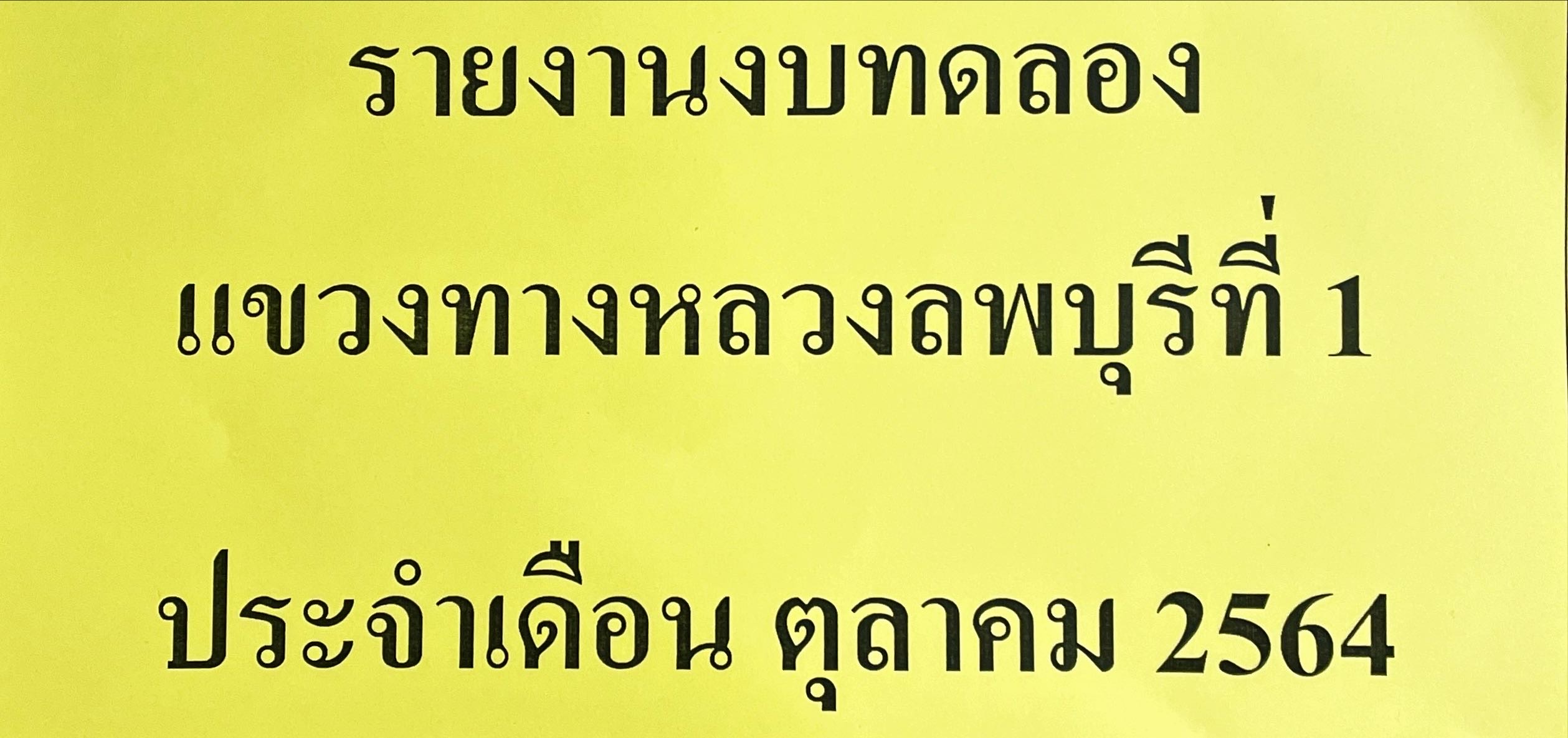 รายงานงบทดลอง แขวงทางหลวงลพบุรีที่ 1 ประจำเดือน ตุลาคม 2564