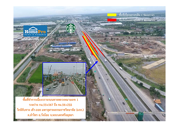 กิจกรรมก่อสร้างเพิ่มประสิทธิภาพทางหลวง ทางหลวงหมายเลข 1 ตอนหนองม่วง – ลำพยนต์ ระหว่าง กม.209+800 – กม.210+350