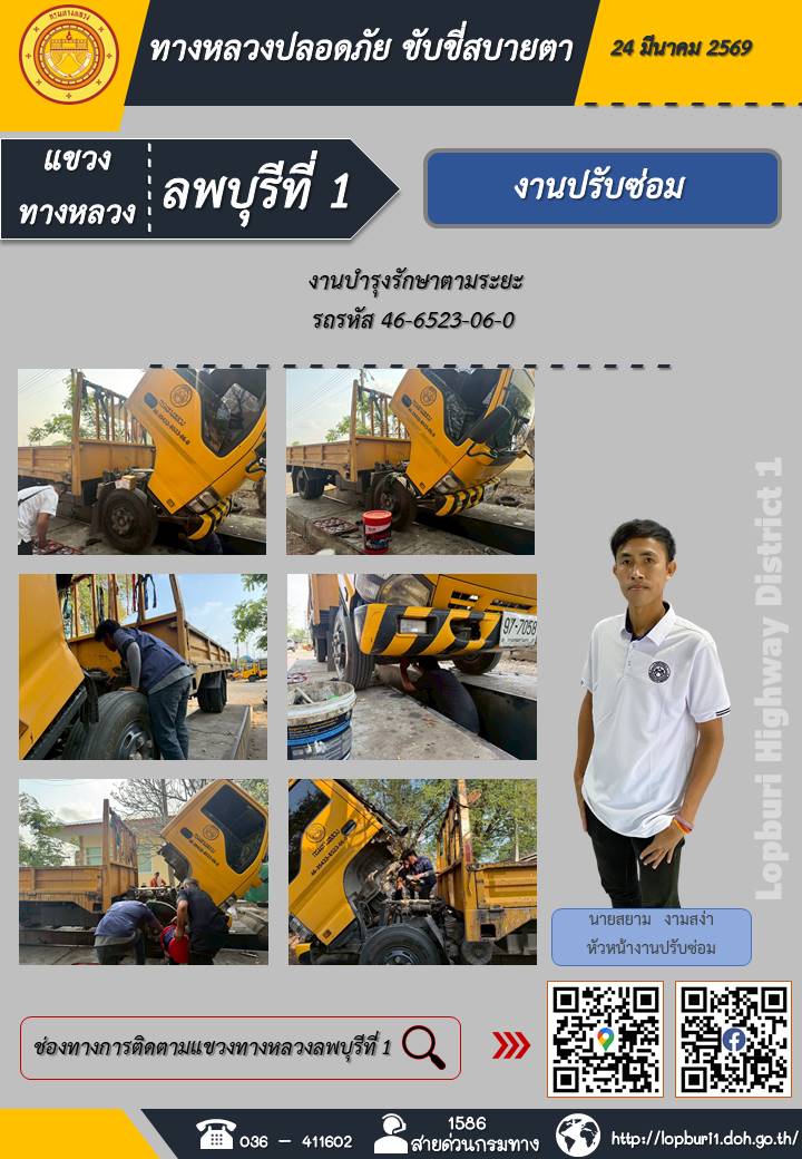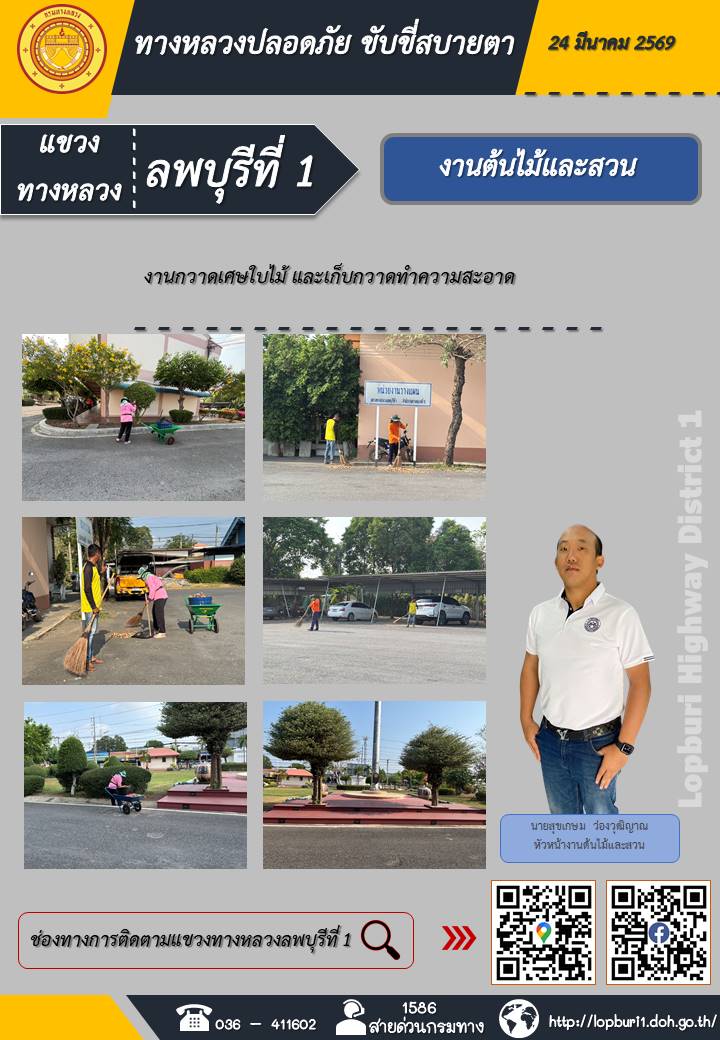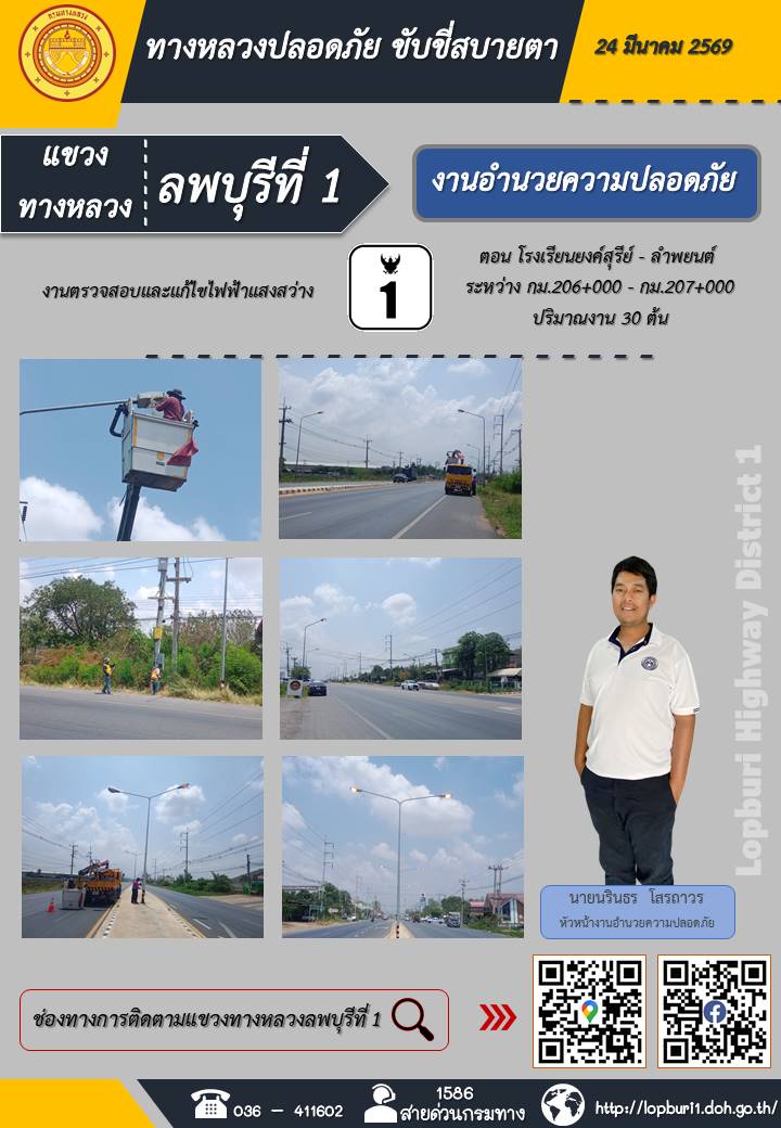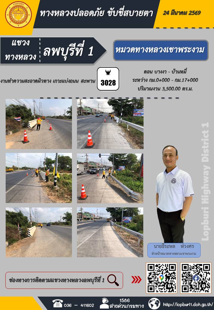 ทางหลวงปลอดภัยขับขี่สบายตา แขวงทางหลวงลพบุรีที่ 1 ประจำวันที่ 24 มีนาคม 2569
