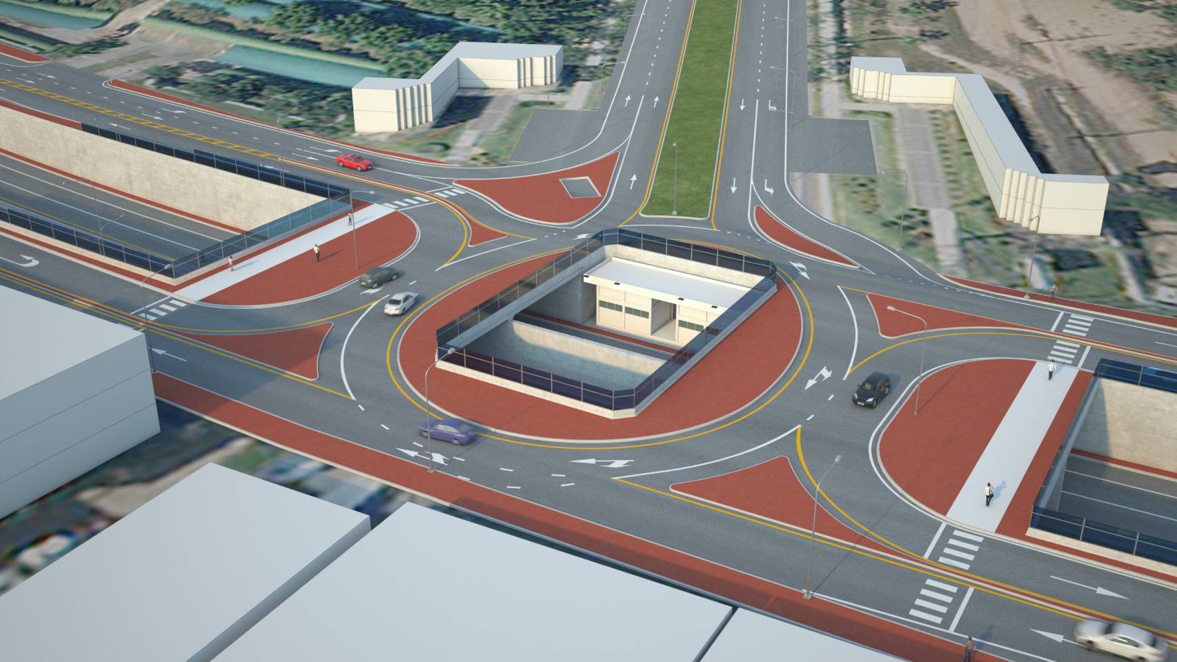 สำหรับการเชื่อมต่อระหว่างทางเข้าหน้ามหาวิทยาลัยและชุมชนฝั่งตรงข้ามจะใช้วงเวียนในการเปลี่ยนทิศทางการจราจร เพื่อระบายรถเข้าสู่ถนนคู่ขนาน โดยออกแบบวงเวียนขนาด 1 ช่องจราจร กว้าง 4 เมตร ไหล่ทางด้านในกว้าง 1 เมตร ไหล่ทางด้านนอกกว้าง 2 เมตร รวมความกว้าง 7 เมตร พร้อมทั้งปรับปรุงทางคู่ขนานทั้ง 2 ฝั่งตลอดแนวทางลอดให้รถสามารถวิ่งสวนทางกันได้ และเมื่อนำมาเชื่อมต่อกับระบบวงเวียนจึงทำให้การจราจรทั้งสองฝั่งสามารถเดินทางถึงกันได้อย่างปลอดภัย งบประมาณก่อสร้าง 420 ล้านบาท ปัจจุบันโครงการดังกล่าวอยู่ในระหว่างการเสนอของบประมาณก่อสร้างปีงบประมาณ พ.ศ.2565 หากได้รับการจัดสรรงบประมาณ คาดว่าจะเริ่มก่อสร้างได้ประมาณต้นปี พ.ศ. 2565