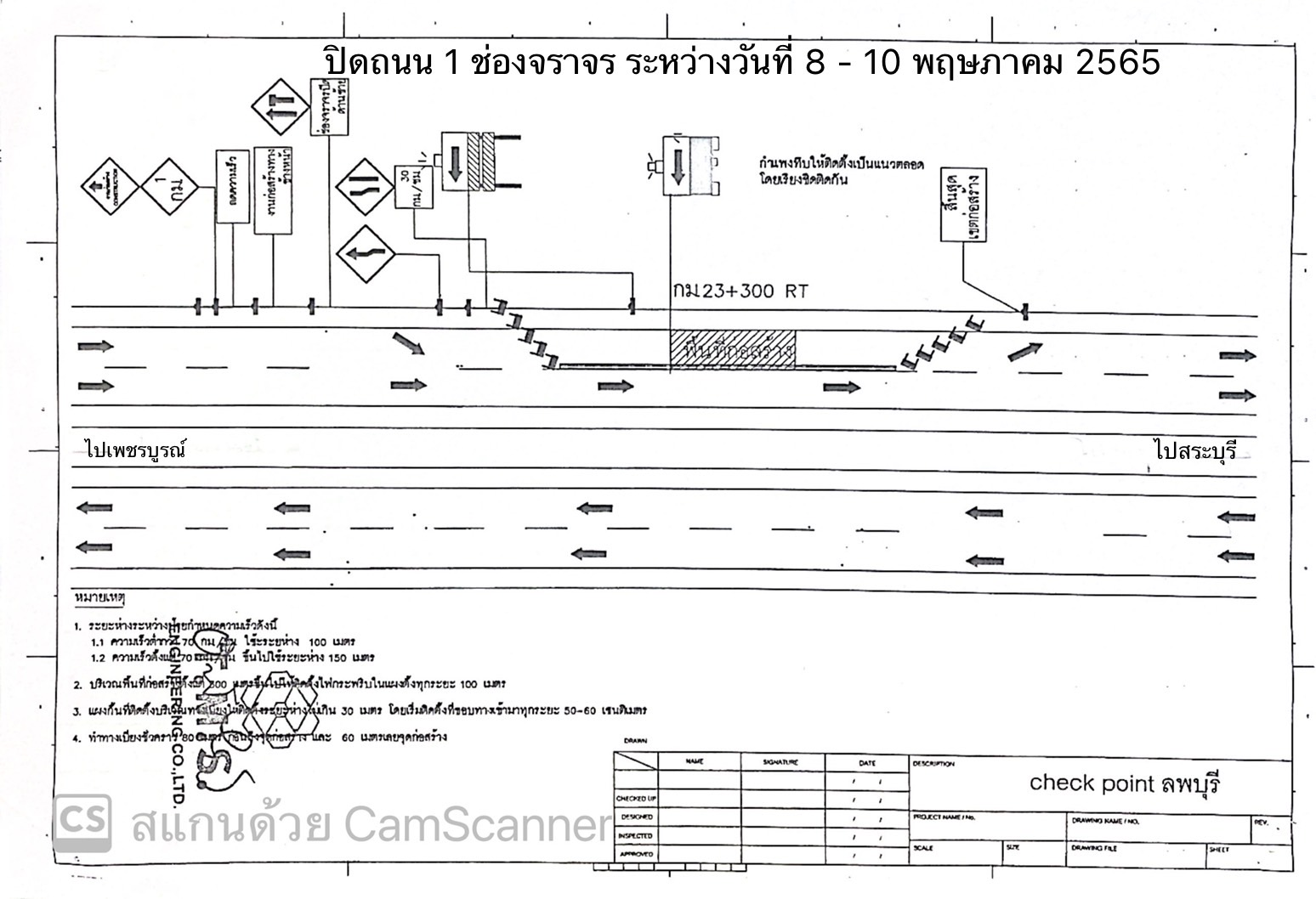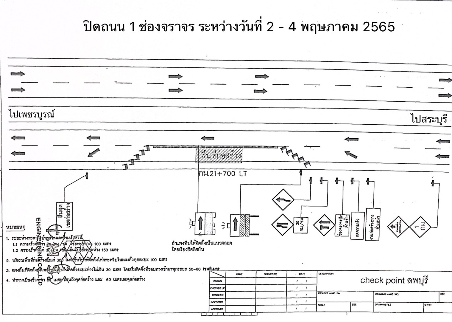 ประชาสัมพันธ์งานก่อสร้าง และปิดการจราจรช่องเลนซ้ายทางและเลนขวาทาง บนทางหลวงหมายเลข 21 ตอนสะพานพุแค - แยกมะนาวหวาน ที่ กม.21+700 LT และที่กม.23+300 RT ตั้งแต่วันที่ 2 - 13 พฤษภาคม 2565 ระยะเวลาทำการ 180 วัน เพื่อประชาสัมพันธ์ให้ประชาชนผู้ใช้ส้นทางและผู้ที่เกี่ยวข้องได้ทราบ เพื่อหลีกเลี่ยงการใช้เส้นทางดังกล่าว