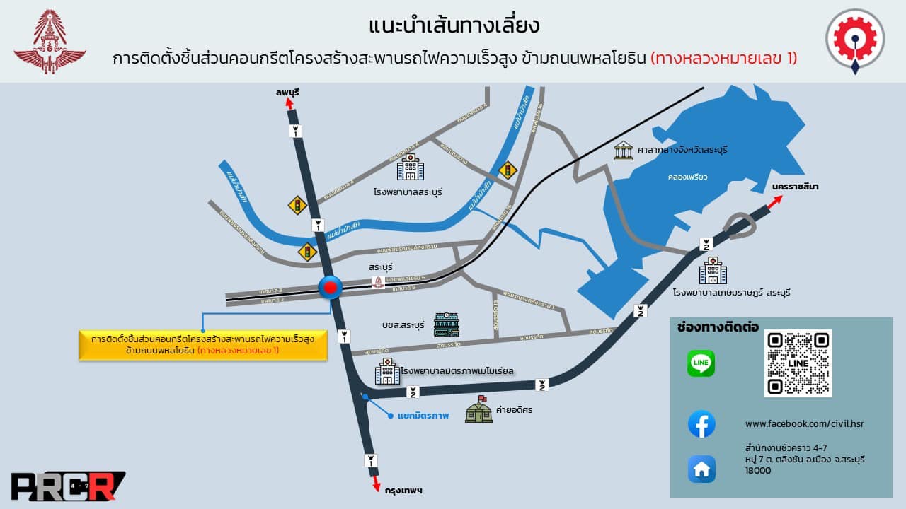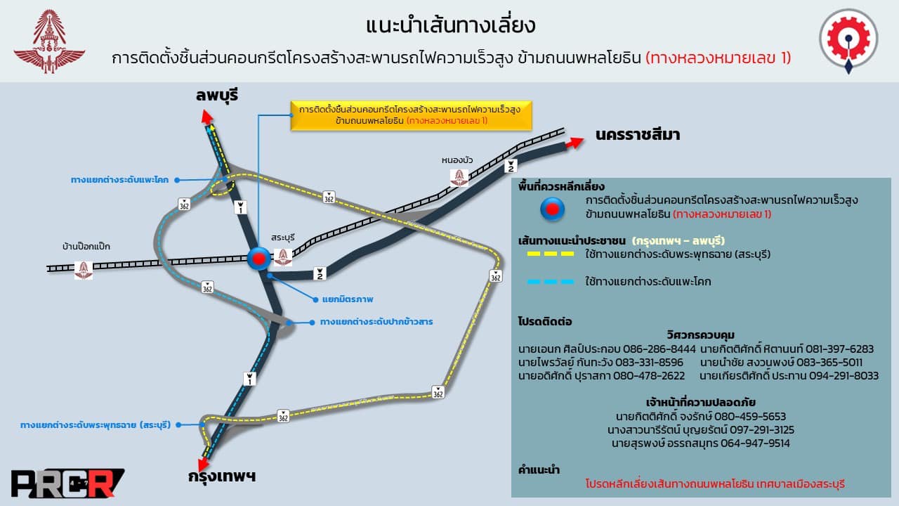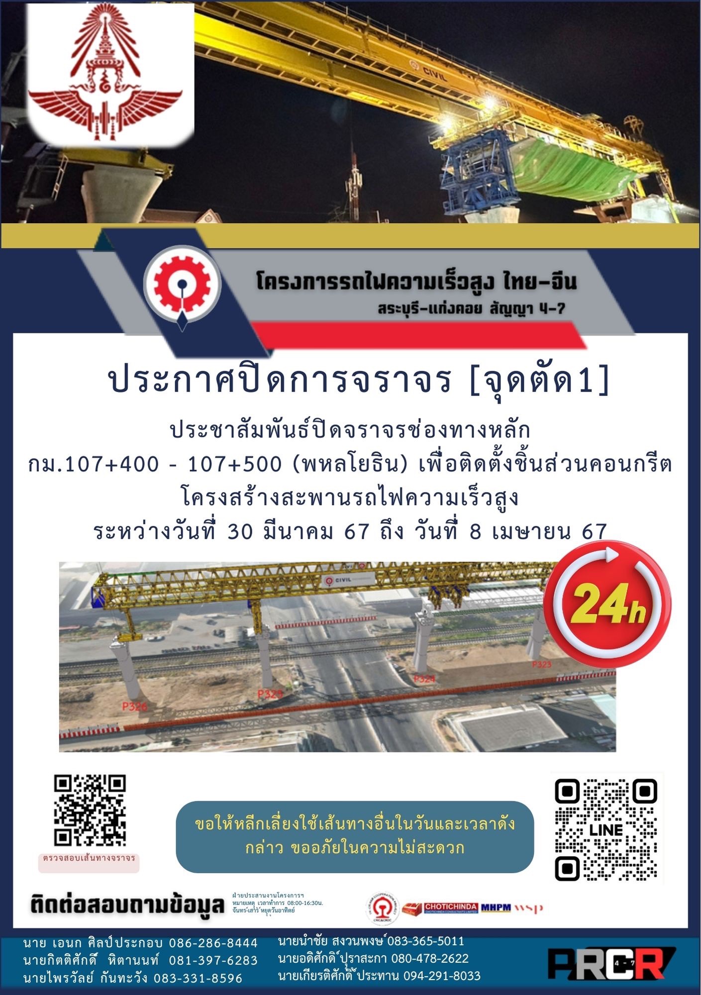 ประกาศปิดการจราจร ช่องทางหลัก (จุดตัด 1 ) กิโลเมตรที่ 107 + 400 ถึง 107 + 500 พหลโยธิน