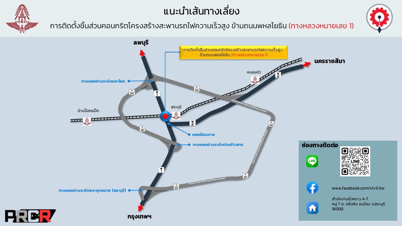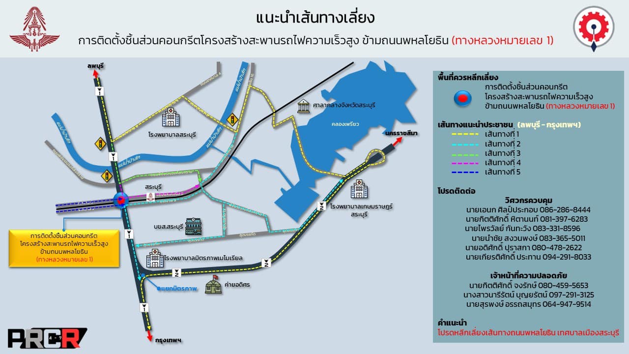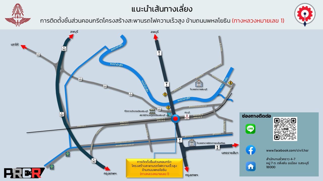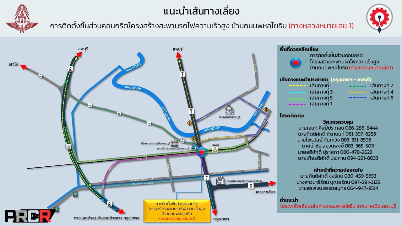 ประกาศปิดการจราจร ช่องทางหลัก (จุดตัด 1 ) กิโลเมตรที่ 107 + 400 ถึง 107 + 500 พหลโยธิน
