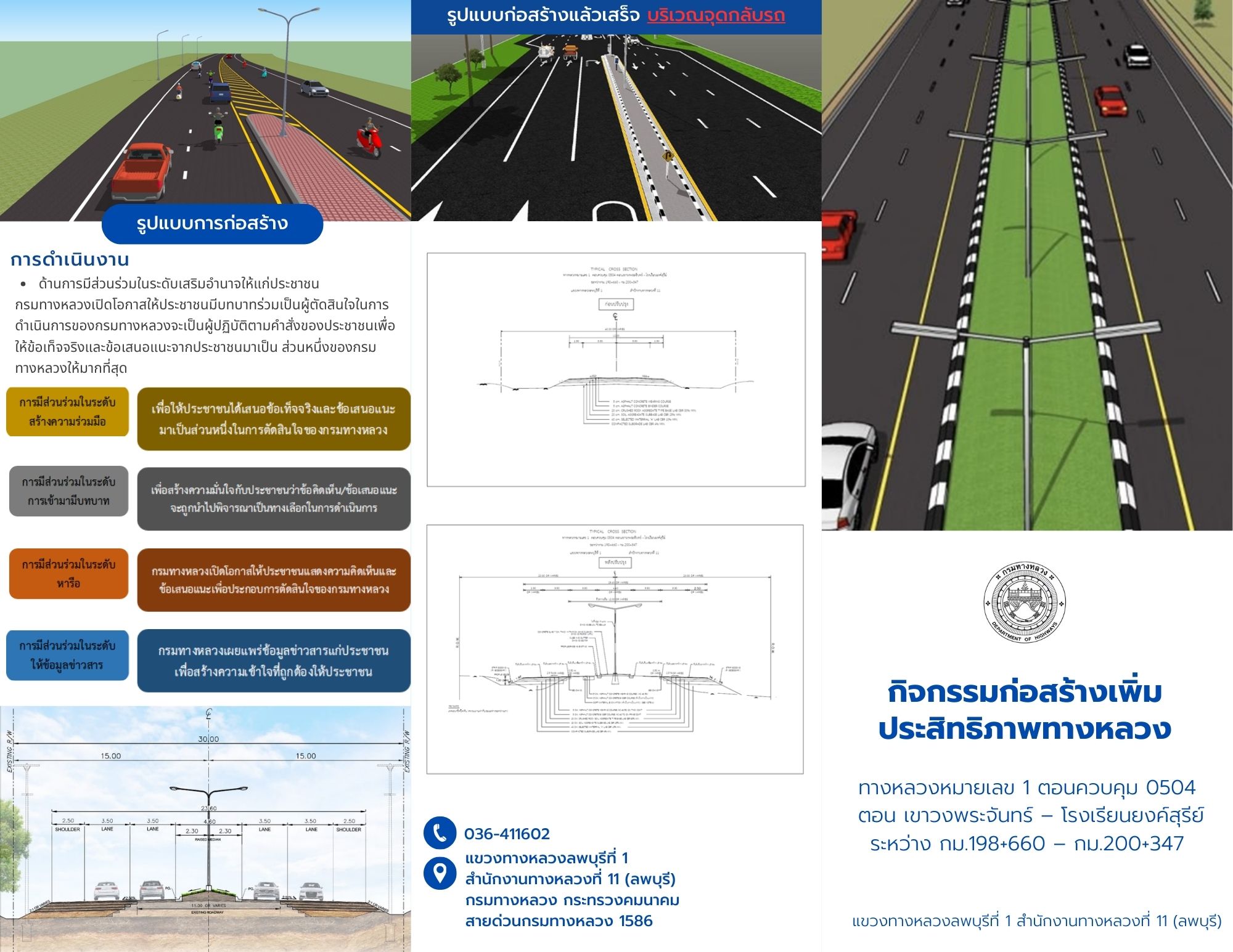 ด้วยแขวงทางหลวงลพบุรีที่ 1 กรมทางหลวง ได้รับจัดสรรงบประมาณปี 2568 กิจกรรมก่อสร้างเพิ่มประสิทธิภาพทางหลวง ทางหลวงหมายเลข 1 ตอน เขาวงพระจันทร์ – โรงเรียนยงค์สุรีย์ ระหว่าง กม.198+660 – กม.200+347 ปริมาณงาน 1 แห่ง โดยจะทำการขยายช่องจราจรจาก 2 ช่องจราจร เป็น 4 ช่องจราจรพร้อมขยายไหล่ทาง พร้อมติดตั้งไฟฟ้าแสงสว่าง/อุปกรณ์อำนวยความปลอดภัย เพื่อเพิ่มประสิทธิภาพในการรองรับประมาณจราจรที่เพิ่มมากขึ้น และเพื่ออำนวยความสะดวกปลอดภัยแก่ผู้ใช้ทางหลวงเพื่อให้ประชาชนในพื้นที่ และประชาชนทั่วไปผู้ใช้ทางหลวงได้รับทราบข้อมูลข่าวสาร รายละเอียดวัตถุประสงค์ และรูปแบบการก่อสร้างรวมถึงขั้นตอนการดำเนินงาน และเปิดโอกาสให้ทุกภาคส่วนที่เกี่ยวข้องได้เข้ามามีส่วนร่วมในการแลกเปลี่ยนข้อมูลข่าวสารที่เป็นประโยชน์ นำไปเป็นแนวทางพิจารณาประกอบการดำเนินงานในโครงการก่อสร้างให้เกิดความเหมาะสม และสอดคล้องกับความต้องการของพื้นที่จึงได้จัดให้มีการประชุมขึ้นในครั้งนี้