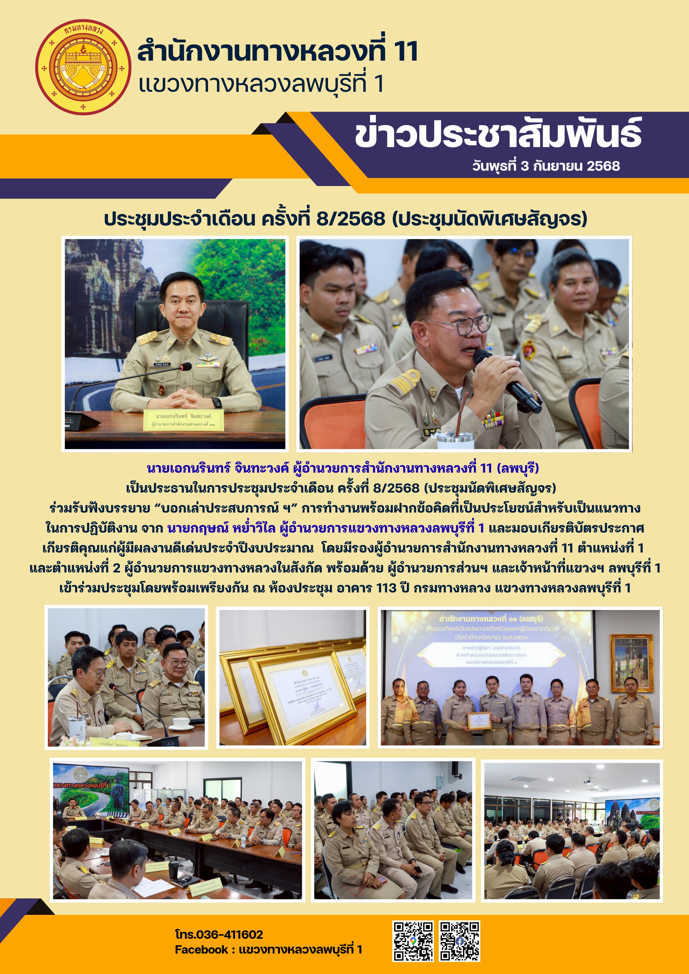 เป็นประธานในการประชุมประจำเดือน ครั้งที่ 8/2568 (ประชุมนัดพิเศษสัญจร) ร่วมรับฟังบรรยาย “บอกเล่าประสบการณ์ ฯ” การทำงานพร้อมฝากข้อคิดที่เป็นประโยชน์สำหรับเป็นแนวทาง