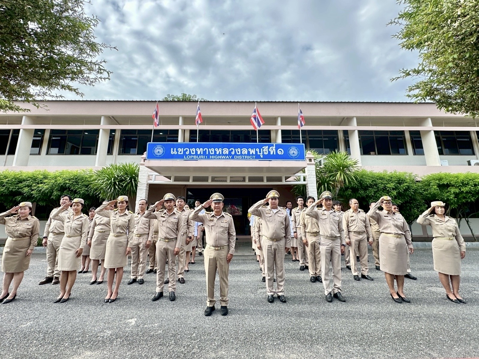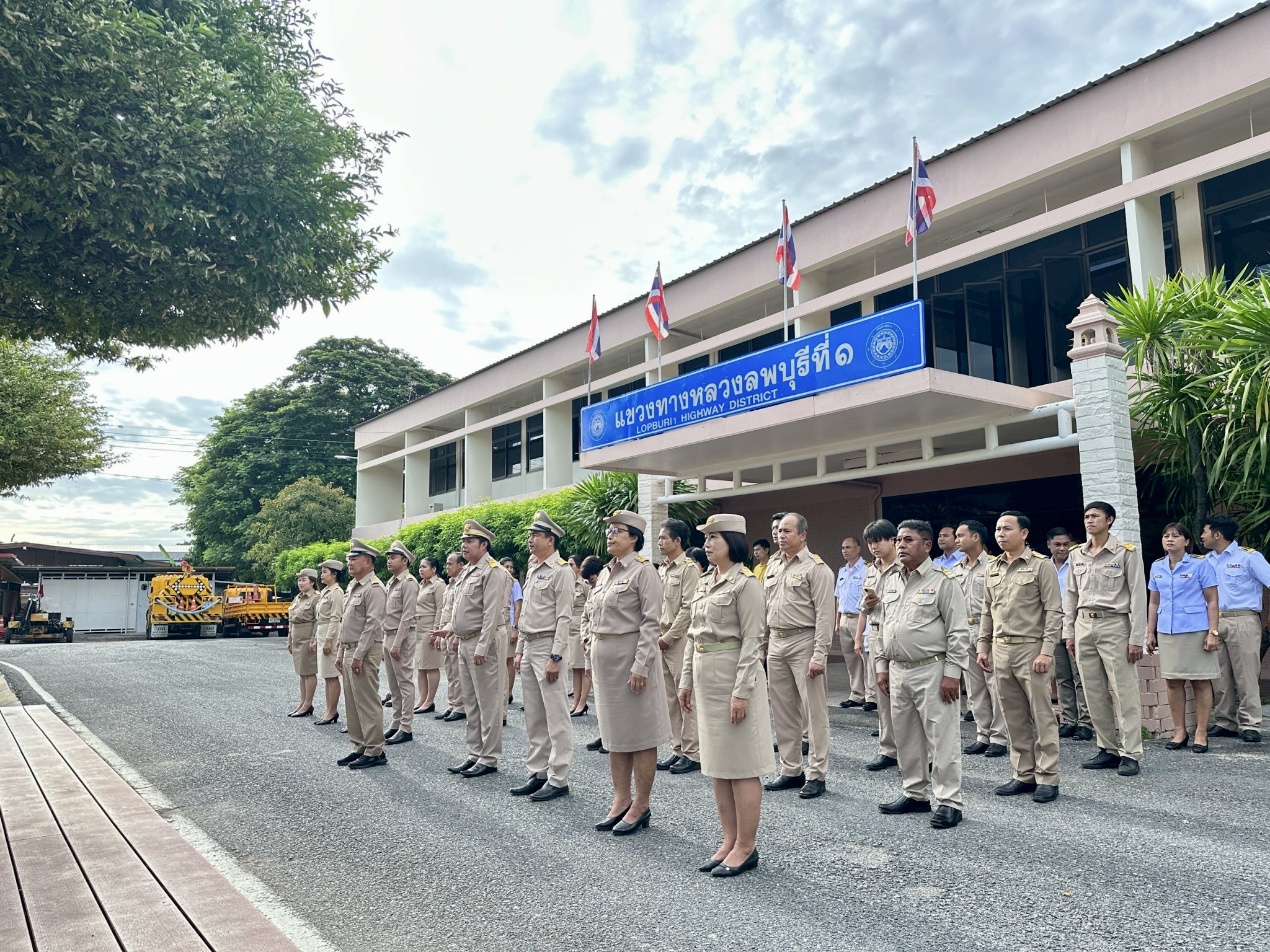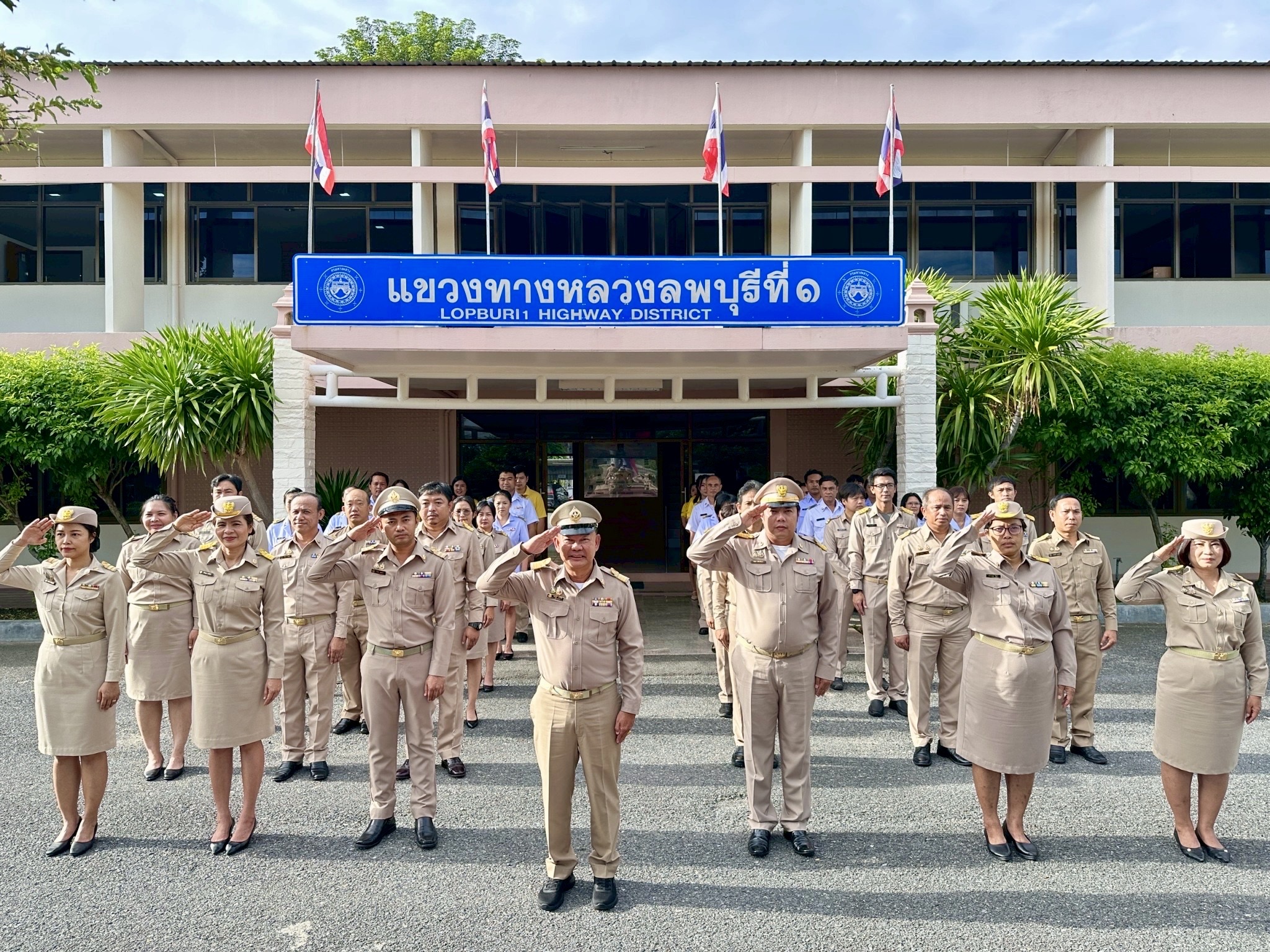 วันจันทร์ที่ 22 กันยายน 2568 เวลา 08.00 น. นายกฤษณ์ หย่ำวิไล ผู้อำนวยการแขวงทางหลวงลพบุรีที่ 1 พร้อมด้วยข้าราขการ และเจ้าหน้าที่แขวงทางหลวงลพบุรีที่ 1 เข้าร่วมกิจกรรมเคารพธงชาติและร้องเพลงชาติไทย ในเวลา 08:00 น. เนื่องในวันพระราชทานธงชาติไทย (Thai National Flag Day) 28 กันยายน ประจำปี 2568 โดยพร้อมเพรียงกัน ณ บริเวณหน้าสำนักงานแขวงทางหลวงลพบุรีที่ 1