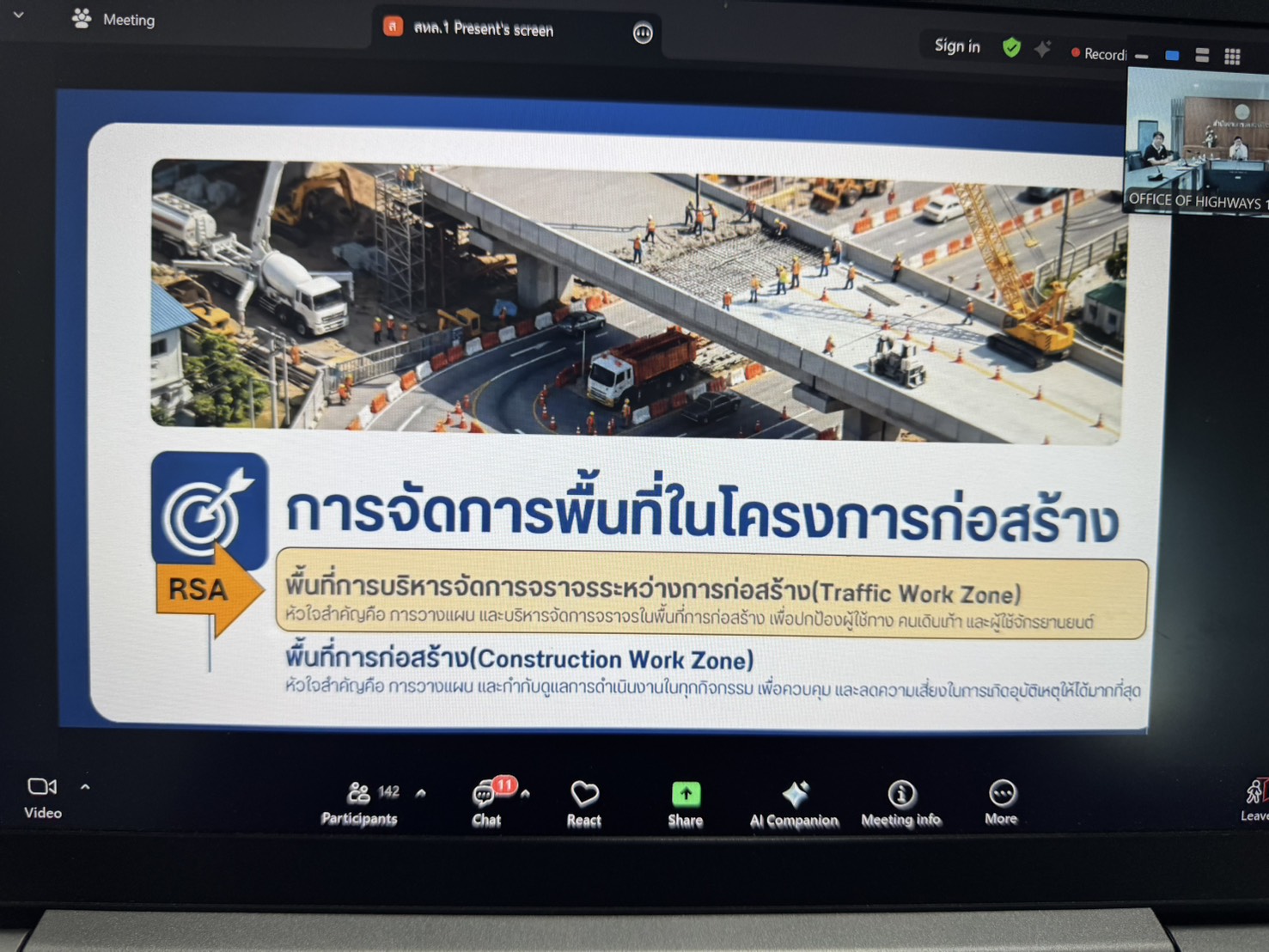 นายสุทธิเกียรติ สุขเสริม ผู้อำนวยการแขวงทางหลวงลพบุรีที่ 1 พร้อม คณะผู้บริหาร หัวหน้าหมวดทางหลวงในสังกัด และเจ้าหน้าที่แขวงทางหลวงลพบุรีที่ 1 เข้าร่วมประชุมประชุมติดตามคณะทำงานการตรวจสอบความปลอดภัยระหว่างก่อสร้าง (Road Safety Audit During Construction) ครั้งที่ 1/2569 ผ่านระบบ Zoom Colud Meeting ณ ห้องพหลโยธิน 1 อาคาร 113 ปี กรมทางหลวง