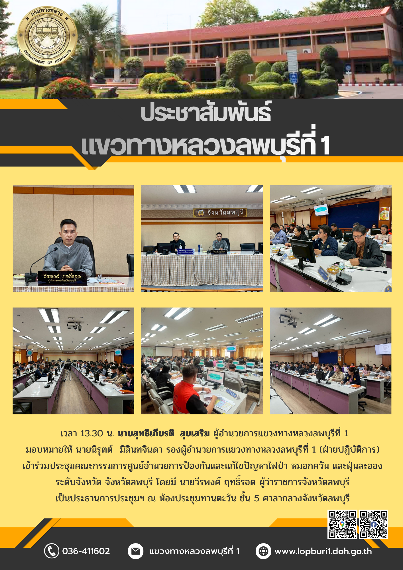 เข้าร่วมประชุมคณะกรรมการศูนย์อำนวยการป้องกันและแก้ไขปัญหาไฟป่า หมอกควัน และฝุ่นละออง ระดับจังหวัด จังหวัดลพบุรี โดยมี นายวีรพงศ์ ฤทธิ์รอด ผู้ว่าราชการจังหวัดลพบุรี