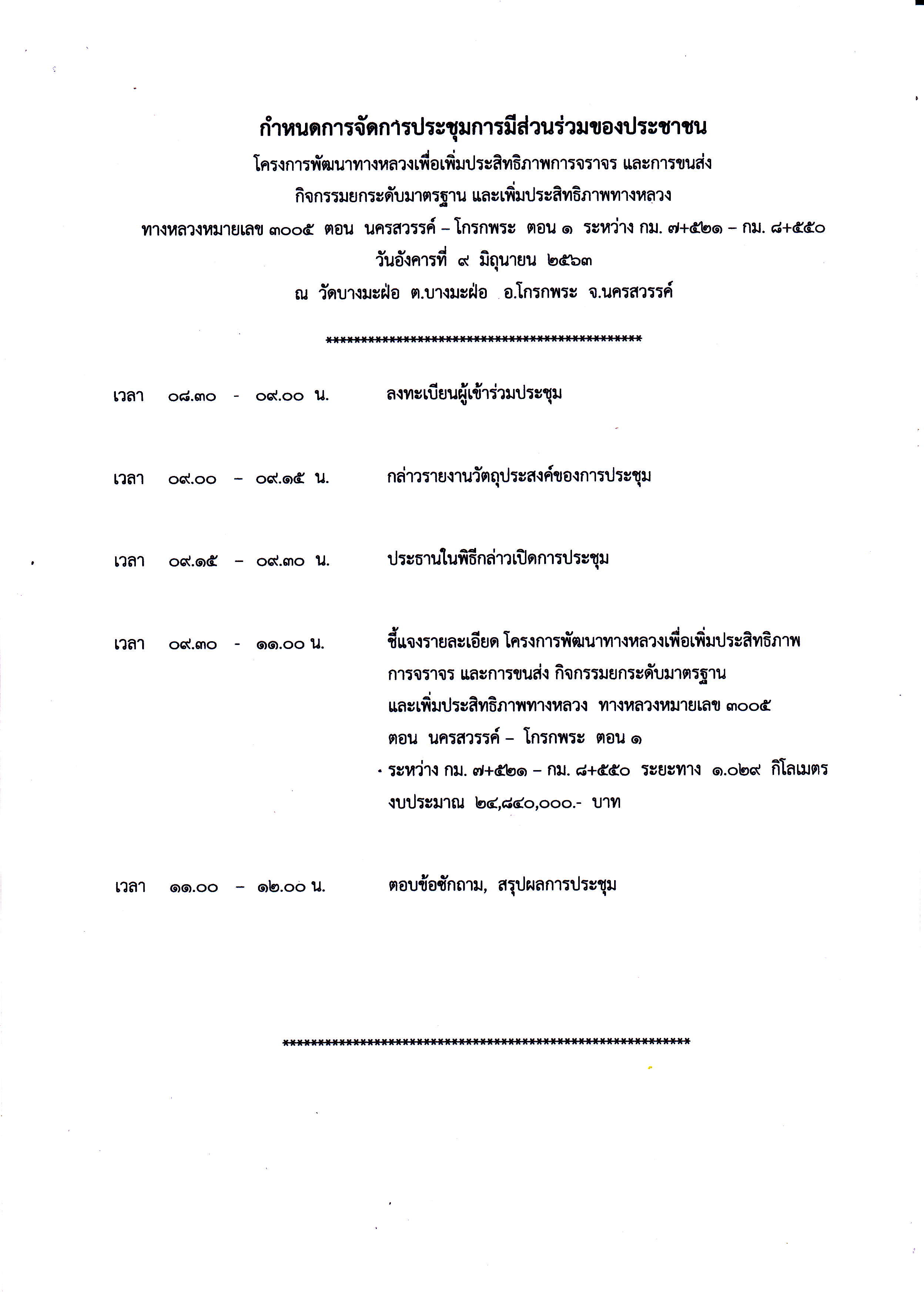 ข่าวประชาสัมพันธ์ กิจกรรมยกระดับมาตรฐานและเพิ่มประสิทธิภาพทางหลวง ทล.3005 ตอน นครสวรรค์ - โกรกพระ ตอนที่ 1 กม.7+521 - กม.8+550