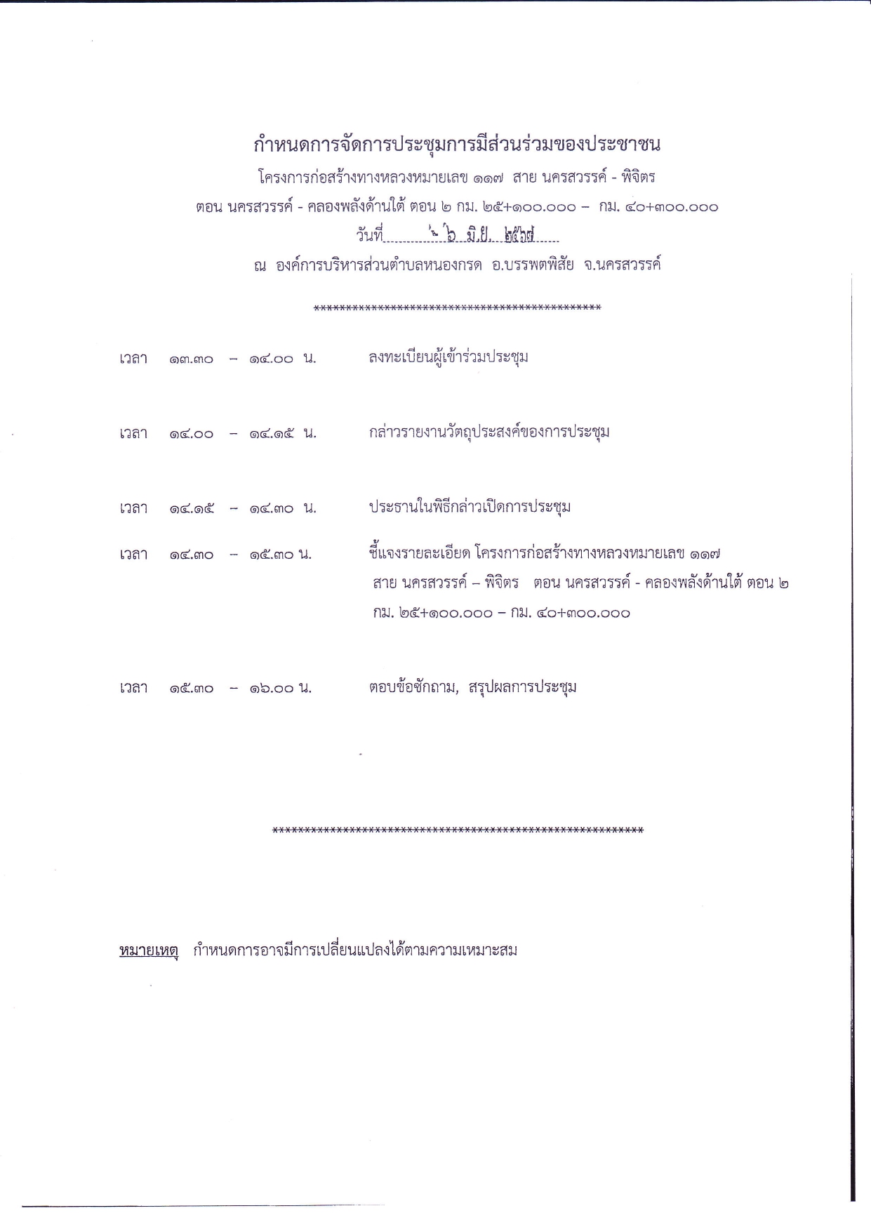 ข้อมูลข่าว : การประชุมการมีส่วนร่วมของประชาชน โครงการก่อสร้างทางหลวงหมายเลข 117 สาย นครสวรรค์ – พิจิตร ตอน นครสวรรค์ – คลองพลังด้านใต้ ตอน 2 ระหว่าง กม. 25+100 – กม. 40+300