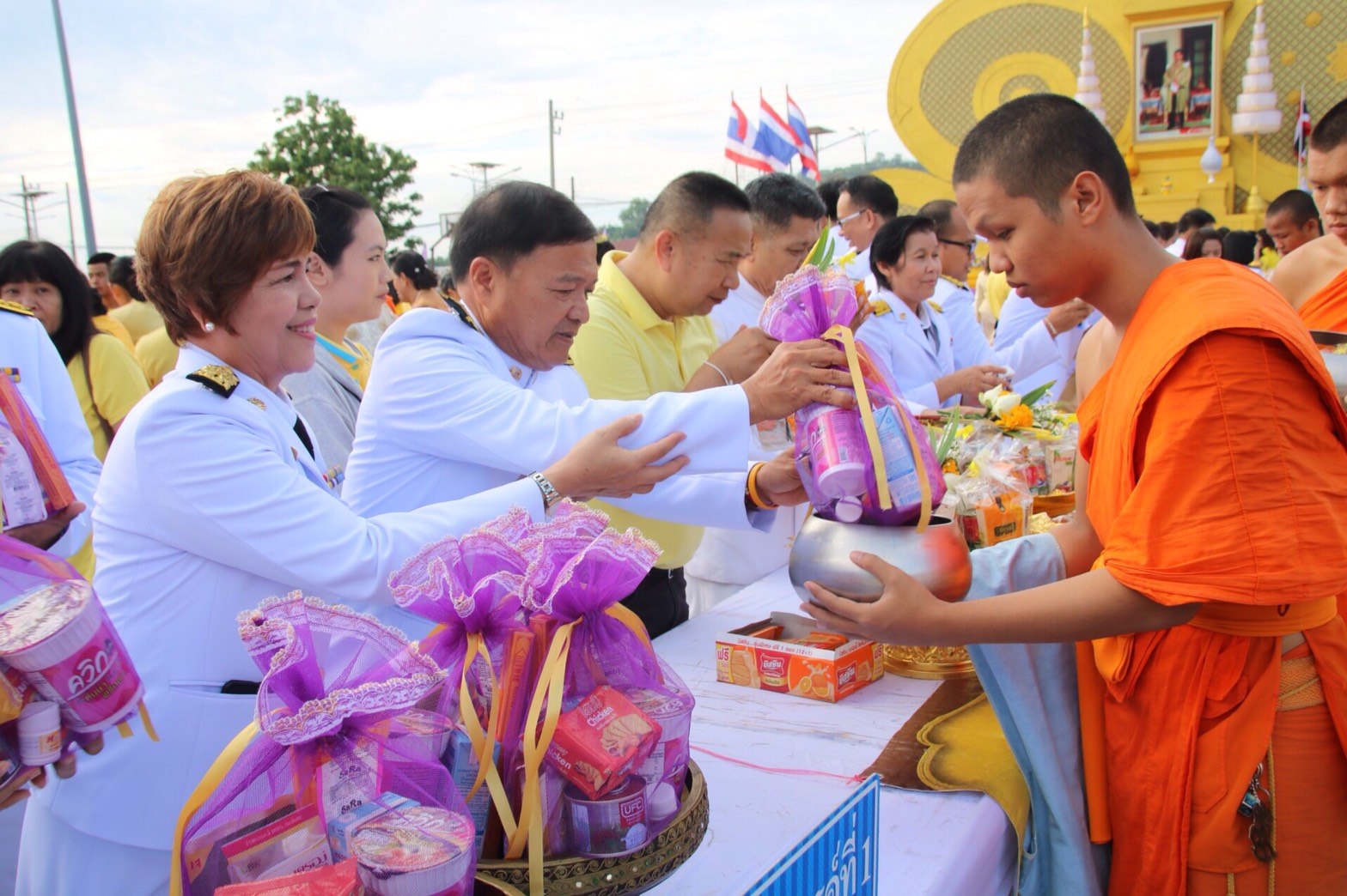 ร่วมทำบุญตักบาตรพระสงฆ์และสามเณร จำนวน 41 รูป เพื่อถวายเป็นพระราชกุศลเนื่องในโอกาสวันเฉลิมพระชนมพรรษา