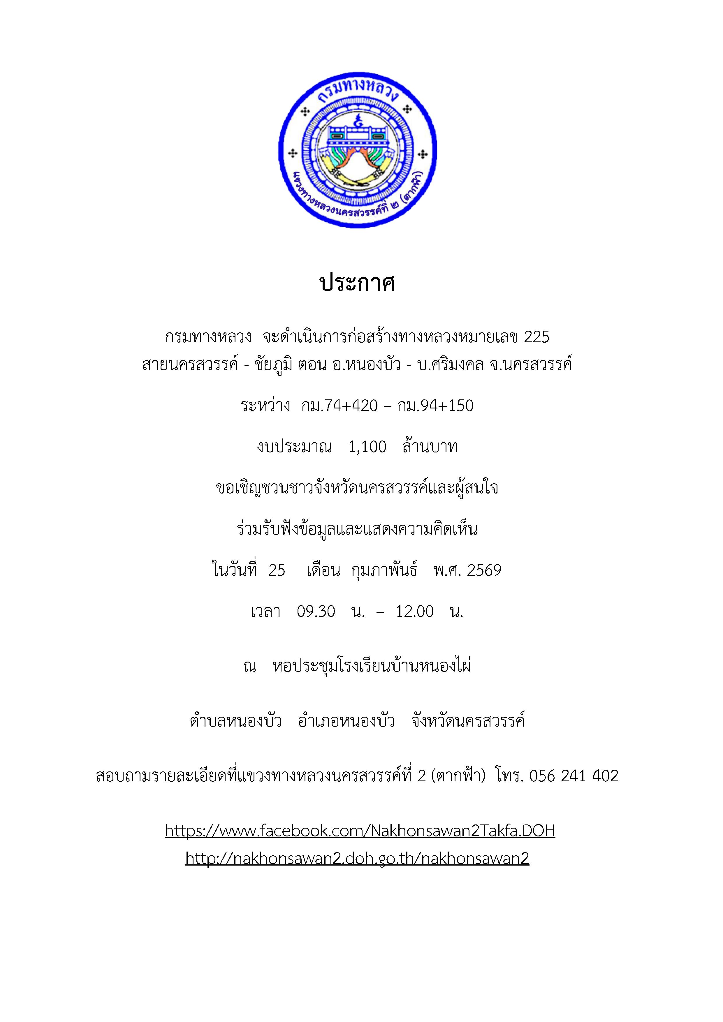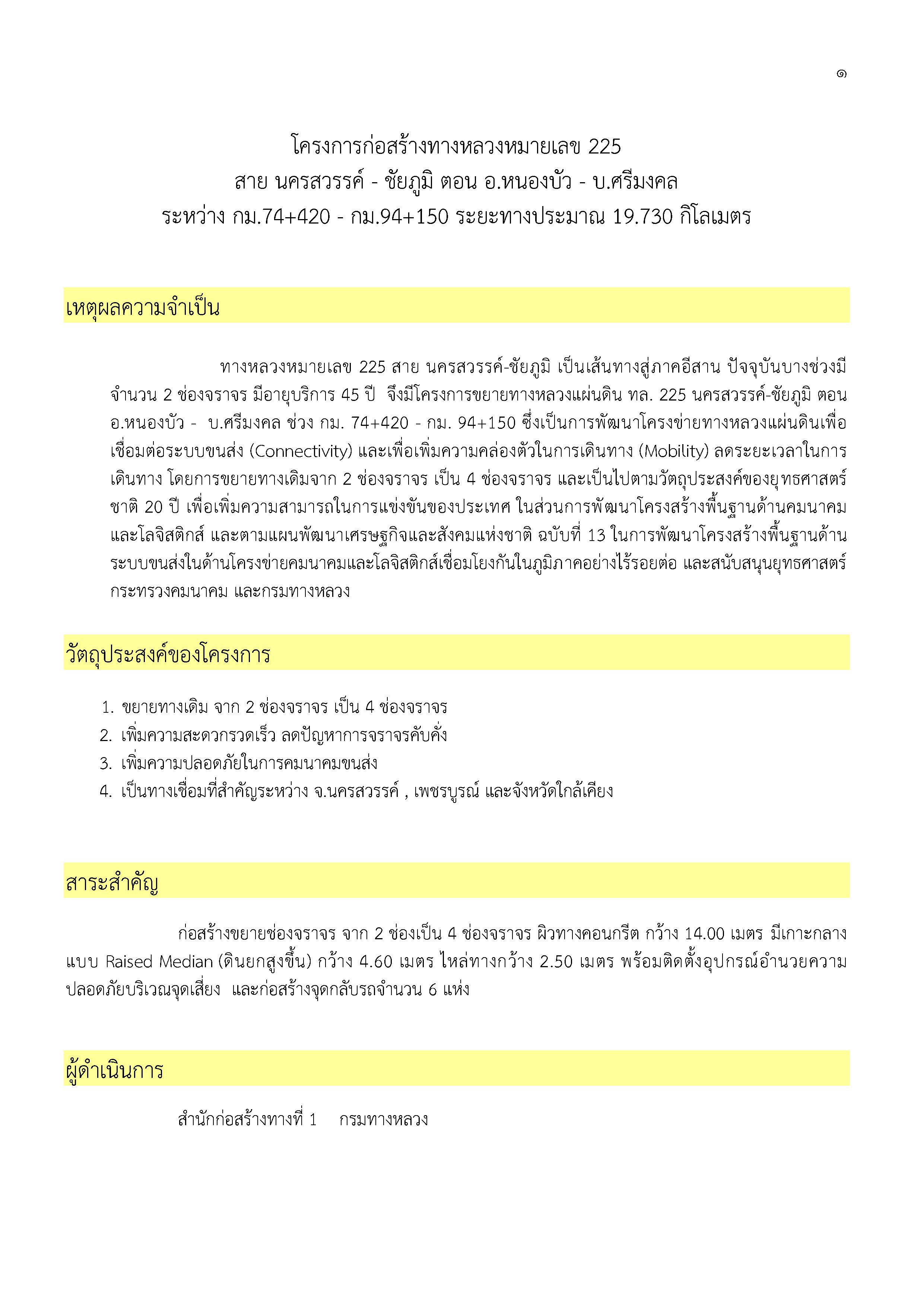 โครงการก่อสร้างทางหลวงหมายเลข 225 สาย นครสวรรค์ - ชัยภูมิ ตอน อ.หนองบัว - บ.ศรีมงคล ระหว่าง กม.74+420 - กม.94+150