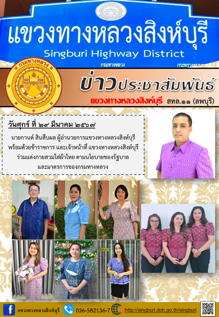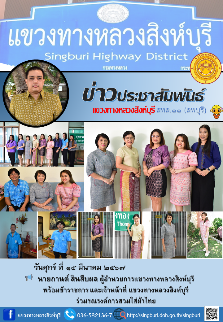 ร่วมแต่งกายสวมใส่ผ้าไทยตามนโยบายของรัฐบาลและมาตรการของกรมทางหลวง |