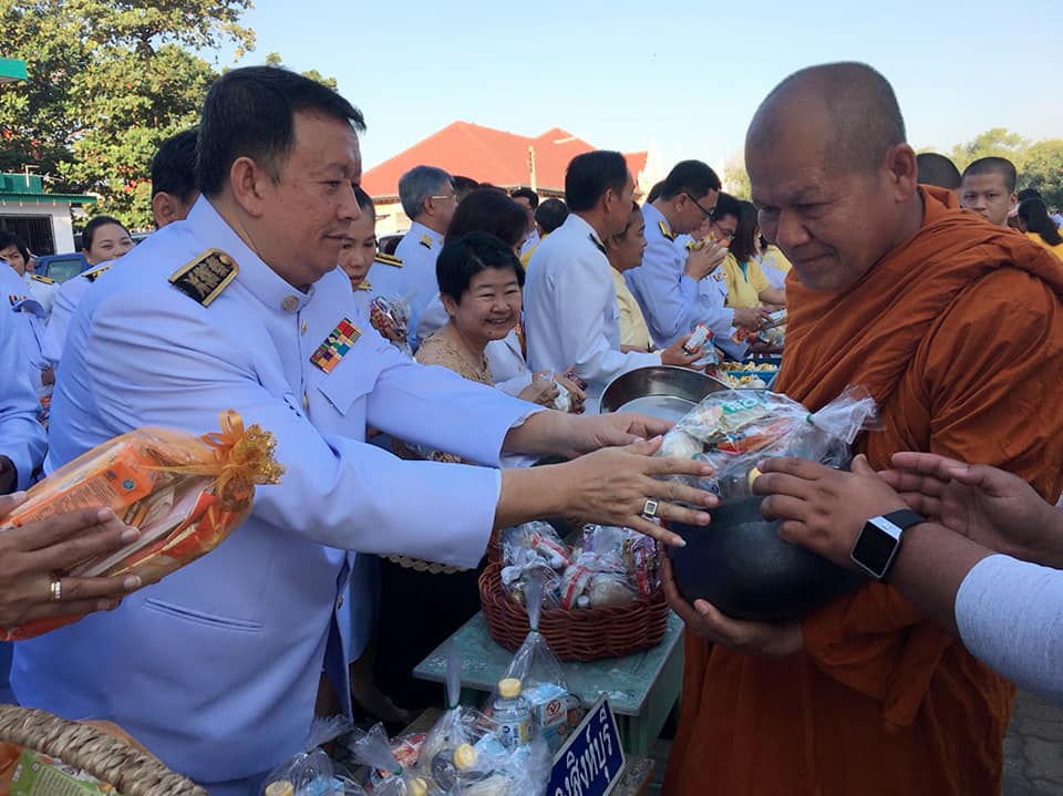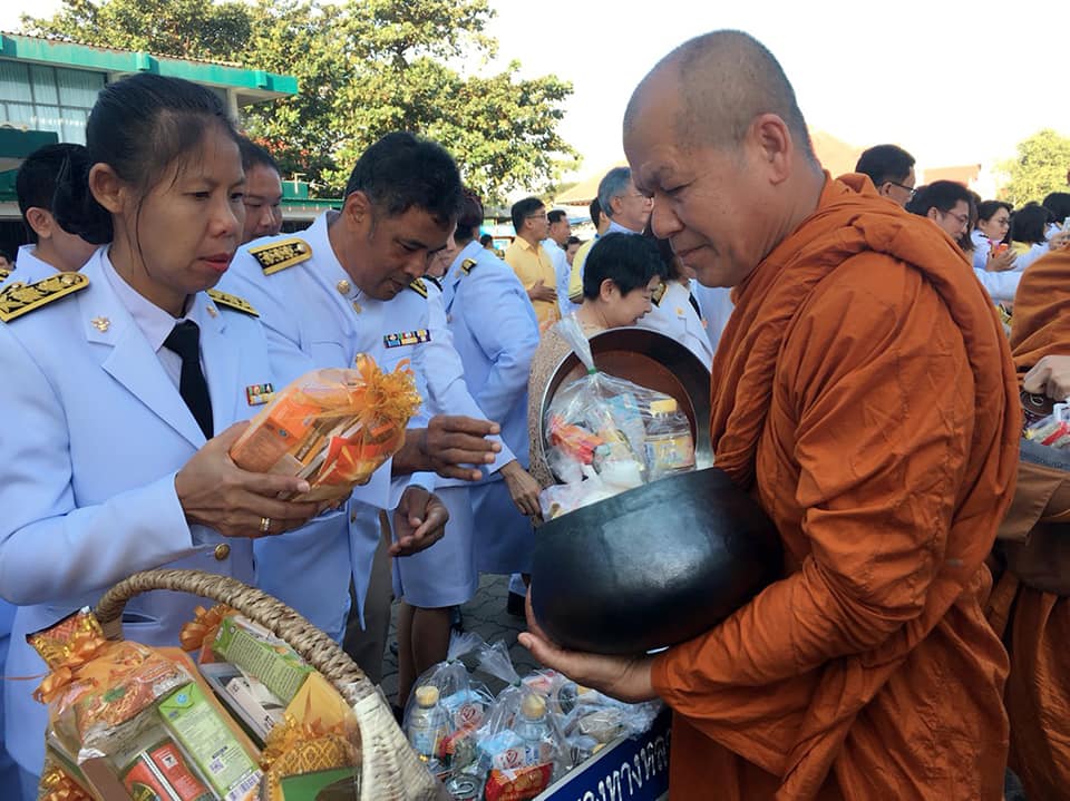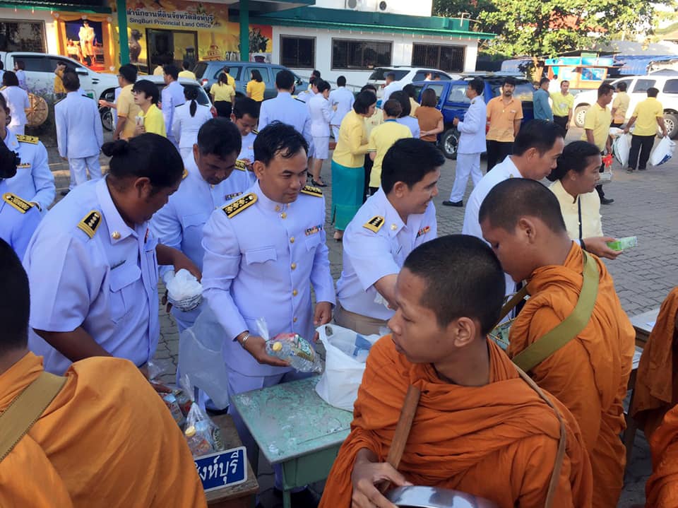นำข้าราชการและพนักงานราชการในสังกัดแขวงทางหลวงสิงห์บุรี เข้าร่วมพิธีทำบุญตักบาตร