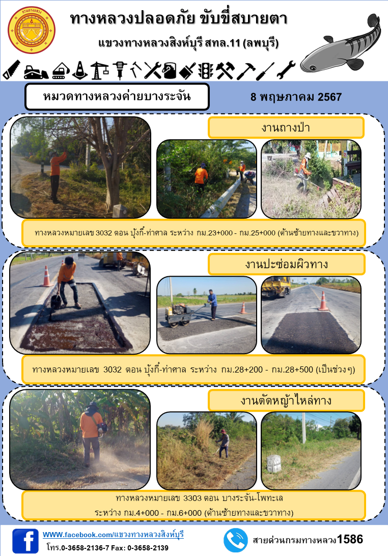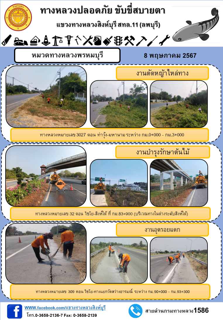 ผลการปฏิบัติงาน ตั้งแต่วันที่ 30 เมษายน - 3 พฤษภาคม 2567 แขวงทางหลวงสิงห์บุรี