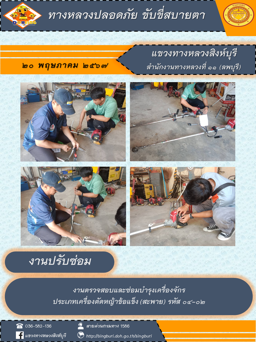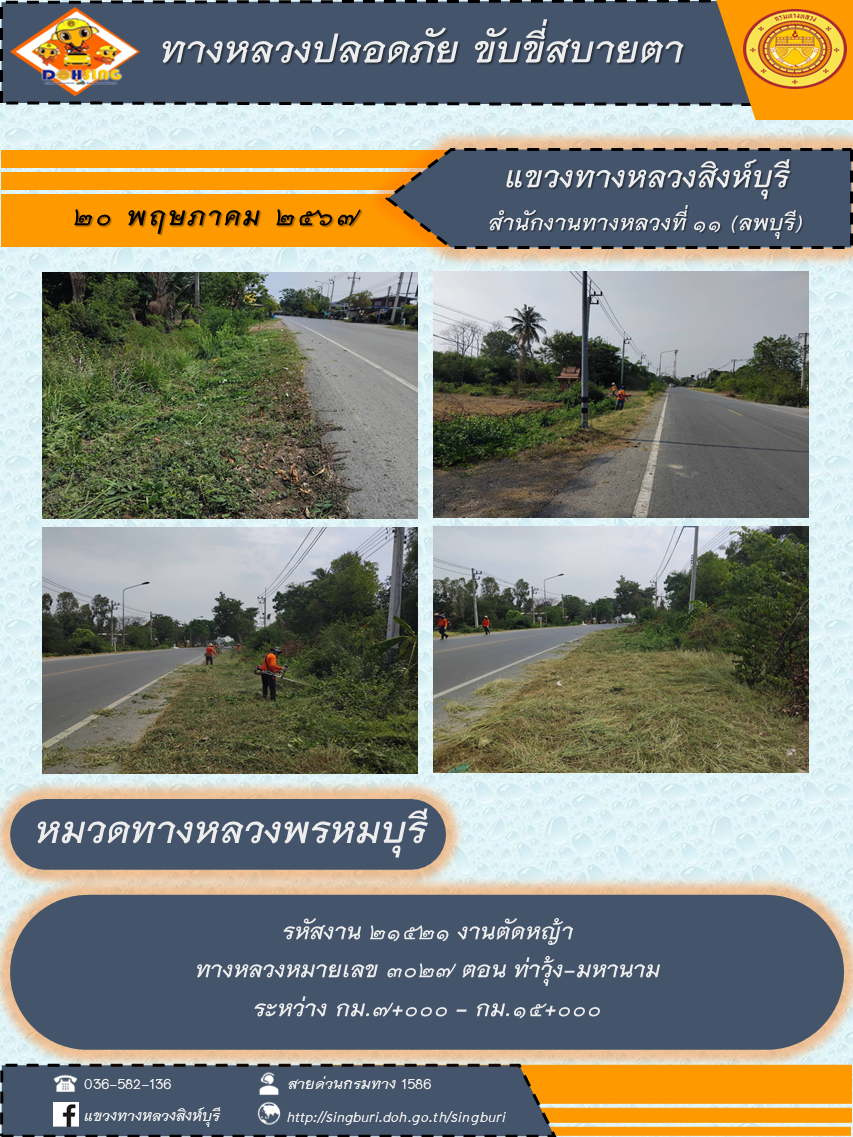 ผลการปฏิบัติงาน ตั้งแต่วันที่ 13 - 17 พฤษภาคม 2567 แขวงทางหลวงสิงห์บุรี