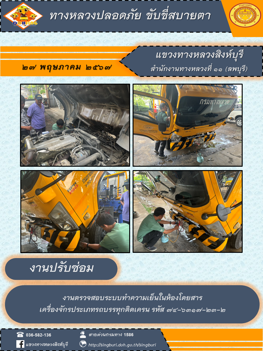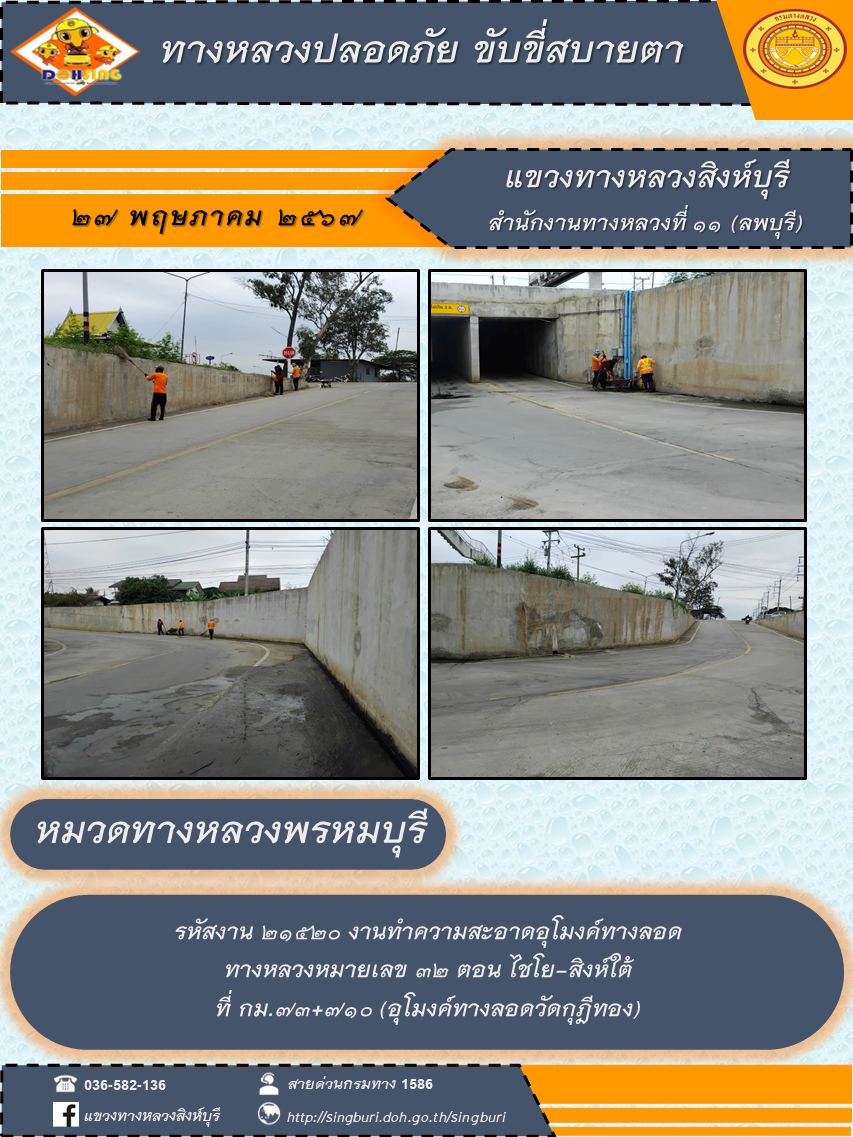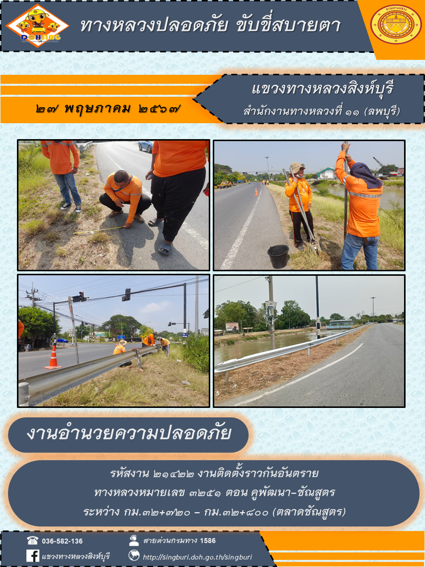 ผลการปฏิบัติงาน ตั้งแต่วันที่ 20 - 24 พฤษภาคม 2567 แขวงทางหลวงสิงห์บุรี