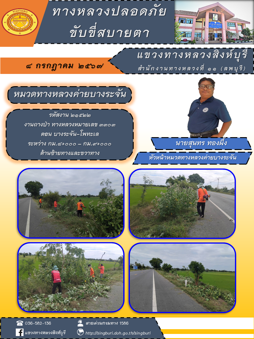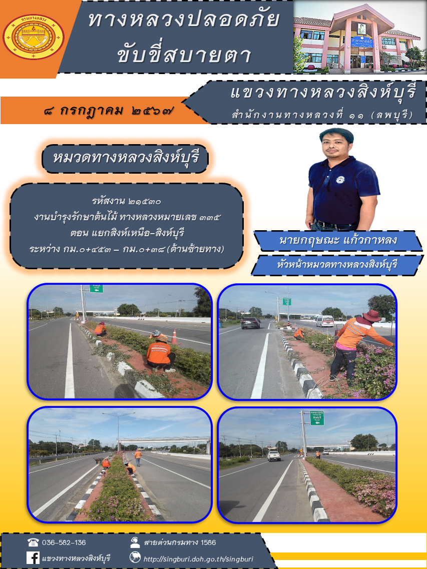 ประชาสัมพันธ์ วันที่ 10 กรกฎาคม 2567 ผลการปฏิบัติงาน ตั้งแต่วันที่ 1 - 5 กรกฎาคม 2567 แขวงทางหลวงสิงห์บุรี