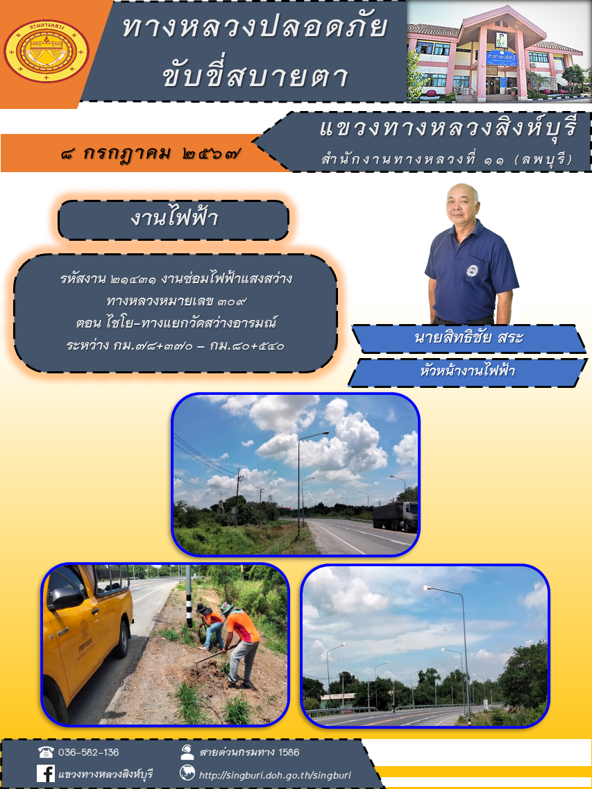 ข้อมูลภาพกิจกรรม : ประชาสัมพันธ์ วันที่ 10 กรกฎาคม 2567 ผลการปฏิบัติงาน ตั้งแต่วันที่ 1 - 5 กรกฎาคม 2567 แขวงทางหลวงสิงห์บุรี
