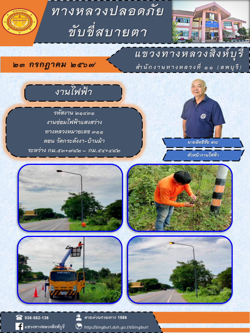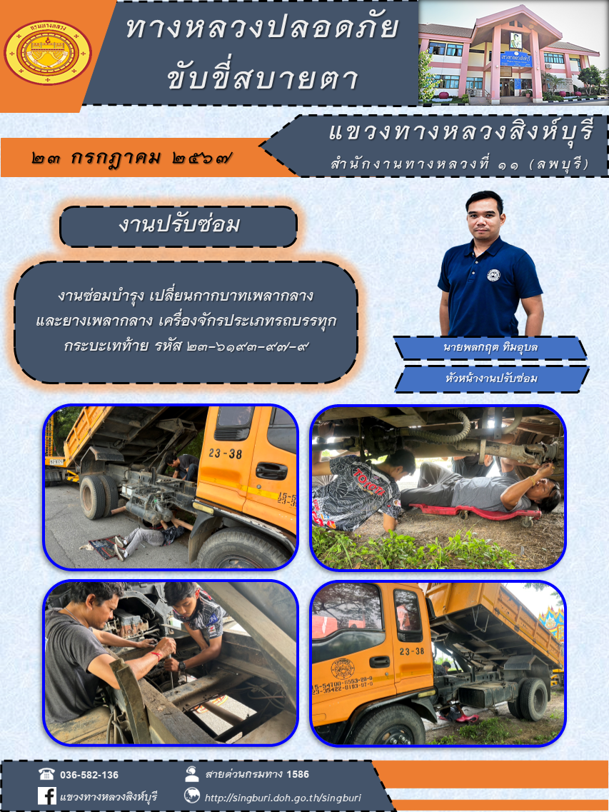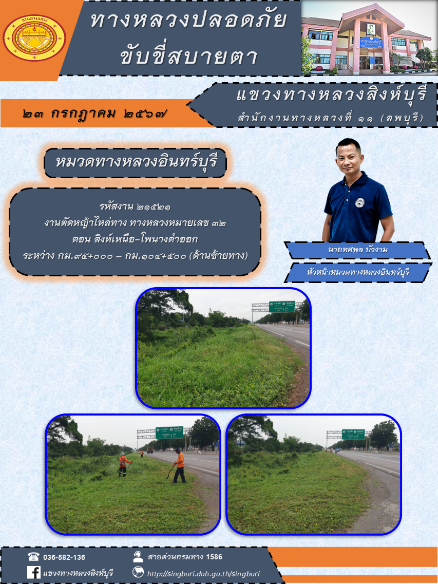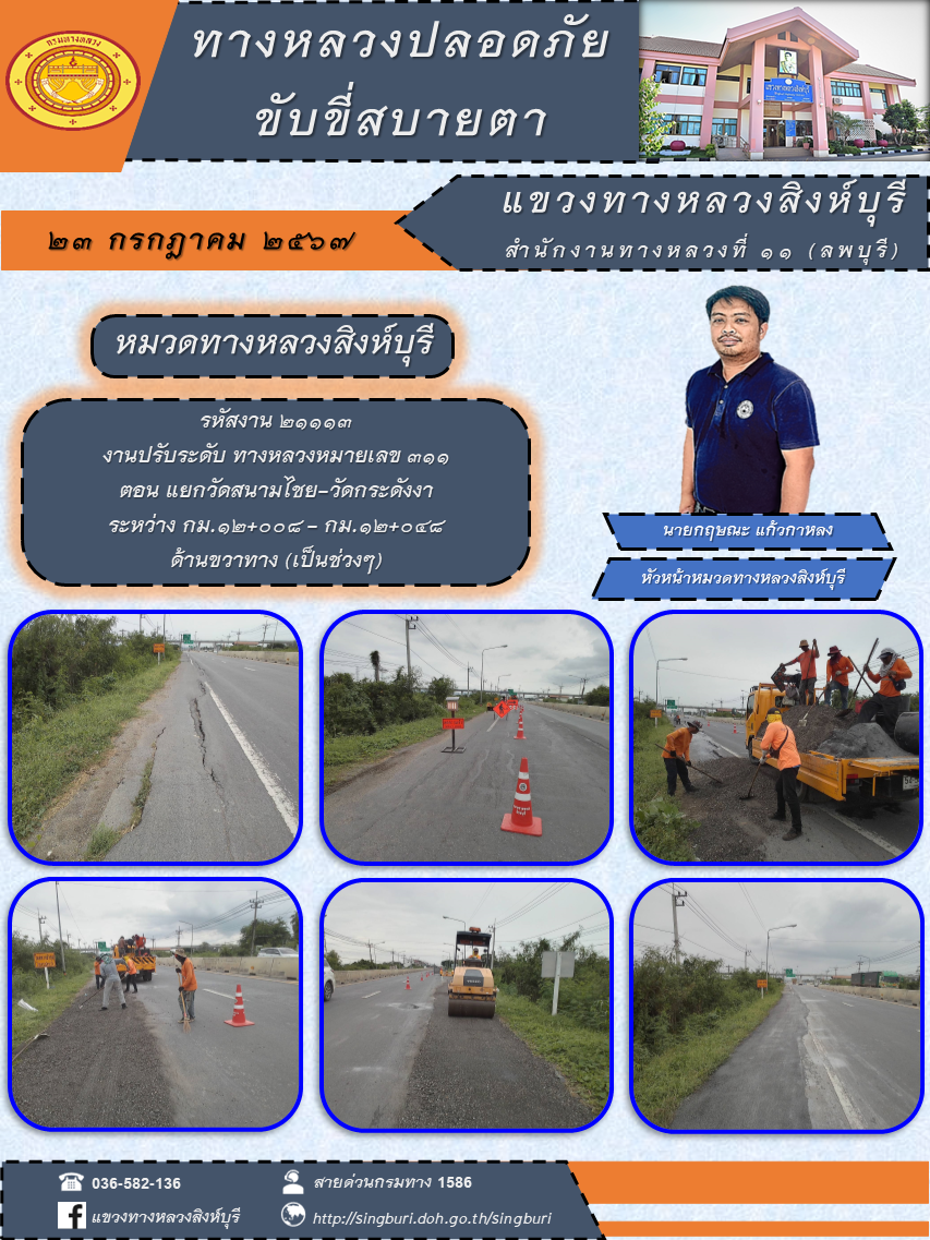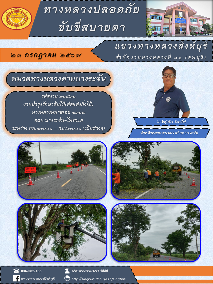 ผลการปฏิบัติงาน ตั้งแต่วันที่ 15 - 19 กรกฎาคม 2567 แขวงทางหลวงสิงห์บุรี