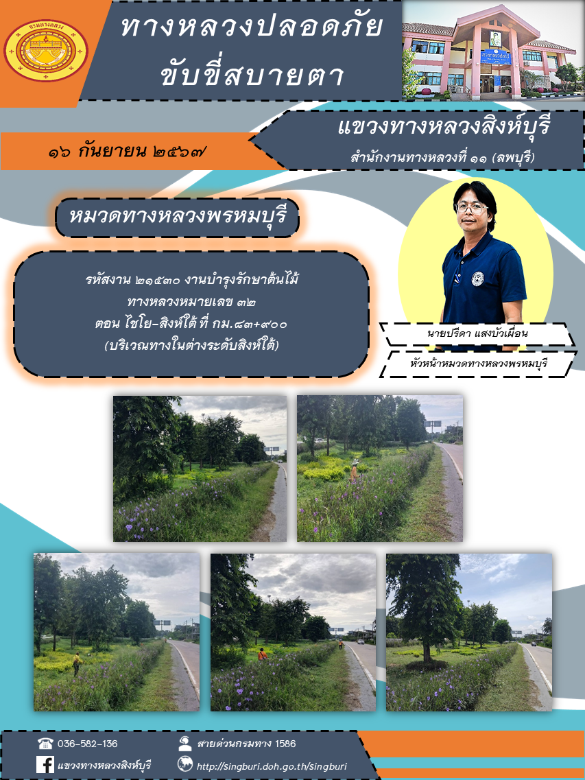 ผลการปฏิบัติงาน ตั้งแต่วันที่ 9-13 กันยายน 2567 แขวงทางหลวงสิงห์บุรี